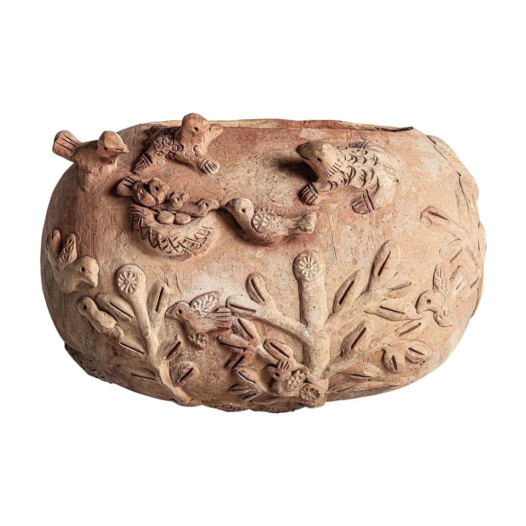 Амфора состаренного светло-коричневого цвета, в восточном стиле. Изготовлен из терракоты.