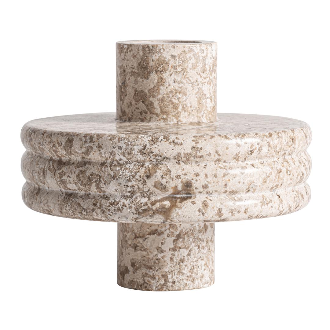 Ваза Trava в современном стиле, изготовлена из бежевого мрамора с матовой отделкой. Ширина: 24 см, Глубина: 24 см, Высота: 21 см