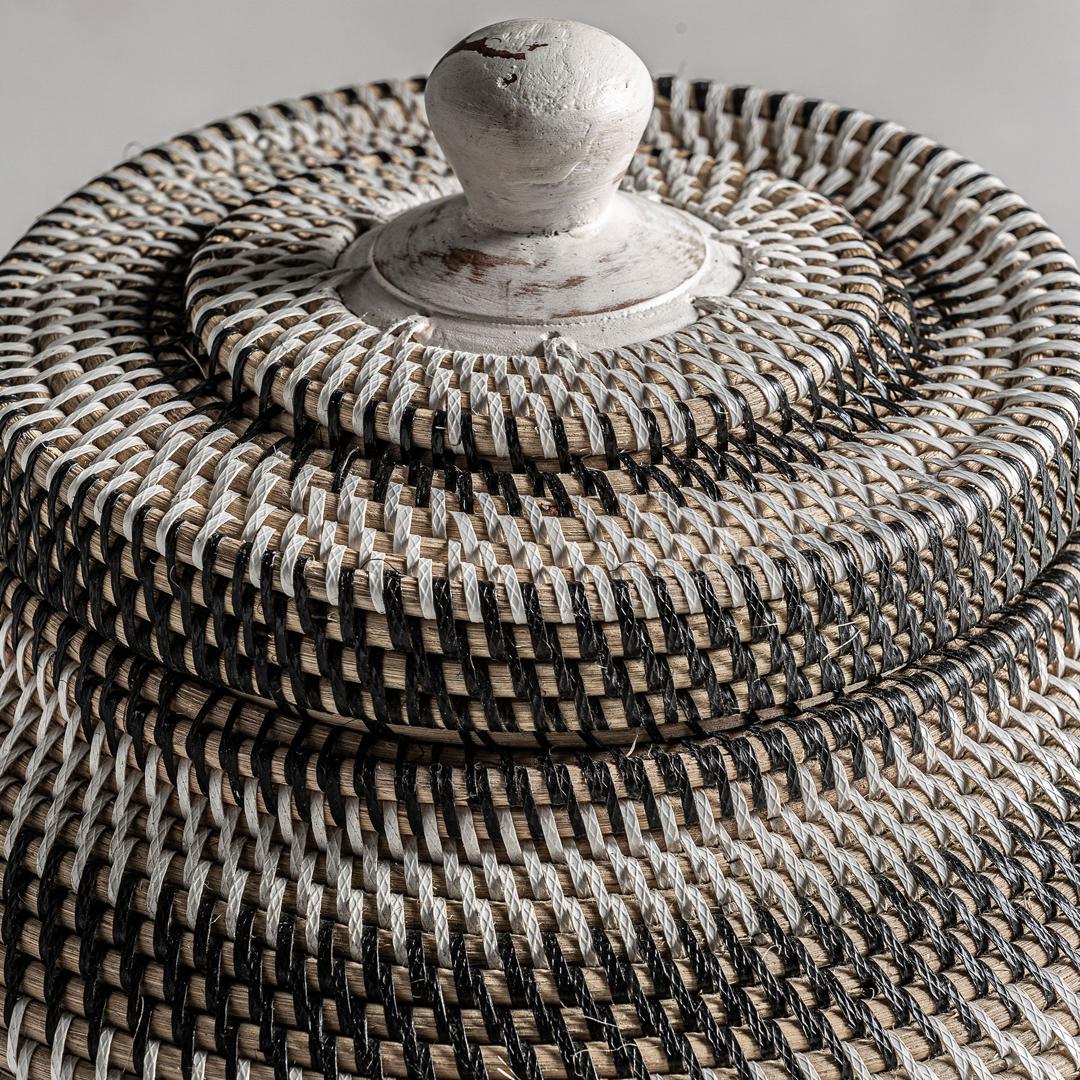 Ваза «ZIRBA», натурального/белого цвета, в этническом стиле. Изготовлена из ротанга.