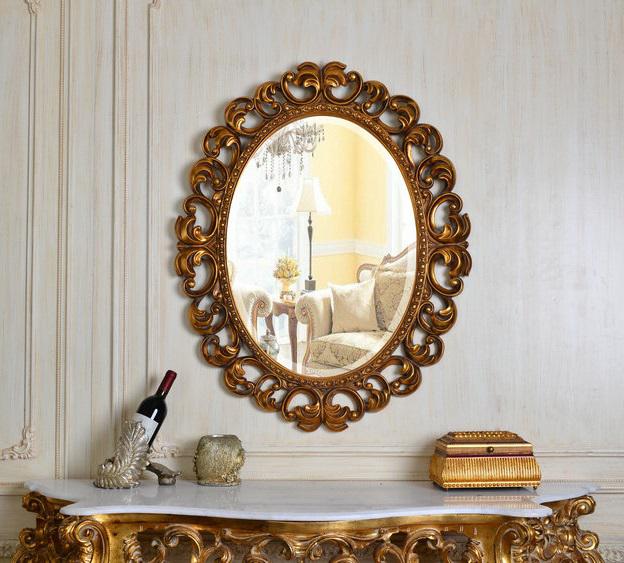 Овальное зеркало в резной раме, навешивается вертикально и горизонтально, влагостойкое