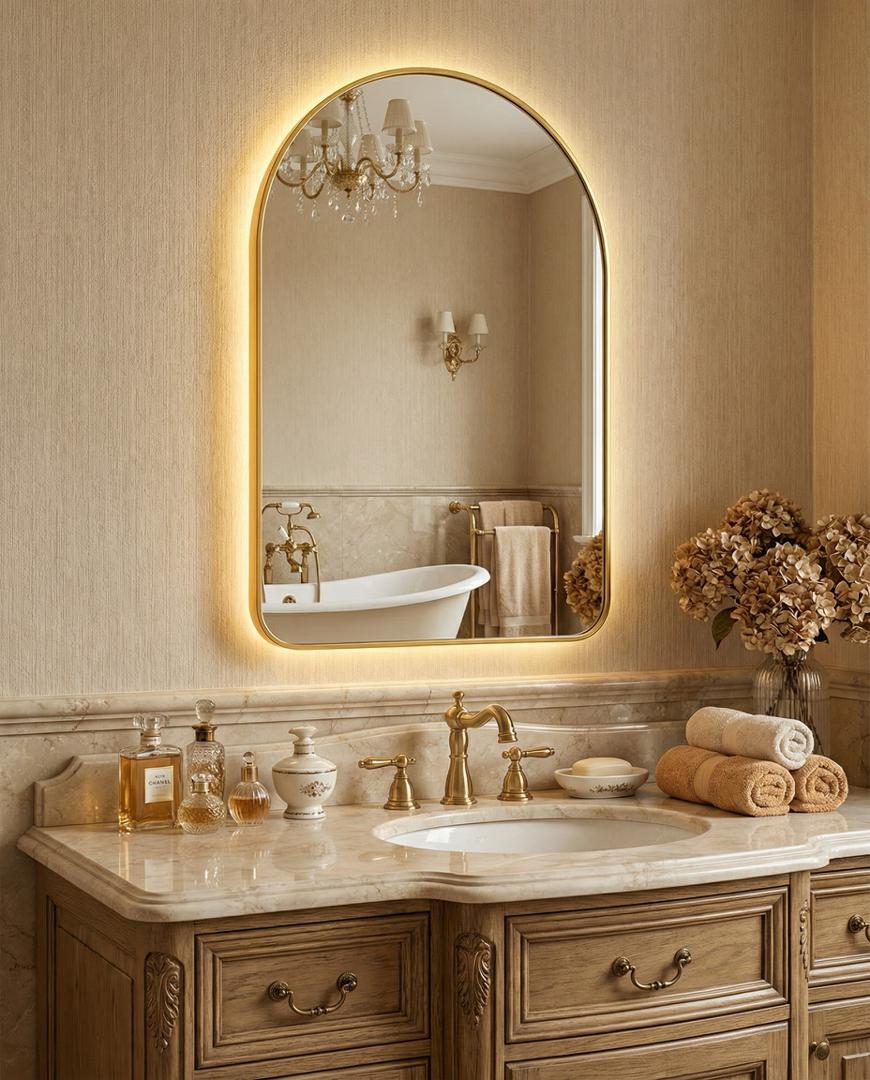 Зеркало Art-Zerkalo Arch M LED Gold Зеркало в раме с подсветкой арт. SM120LGL