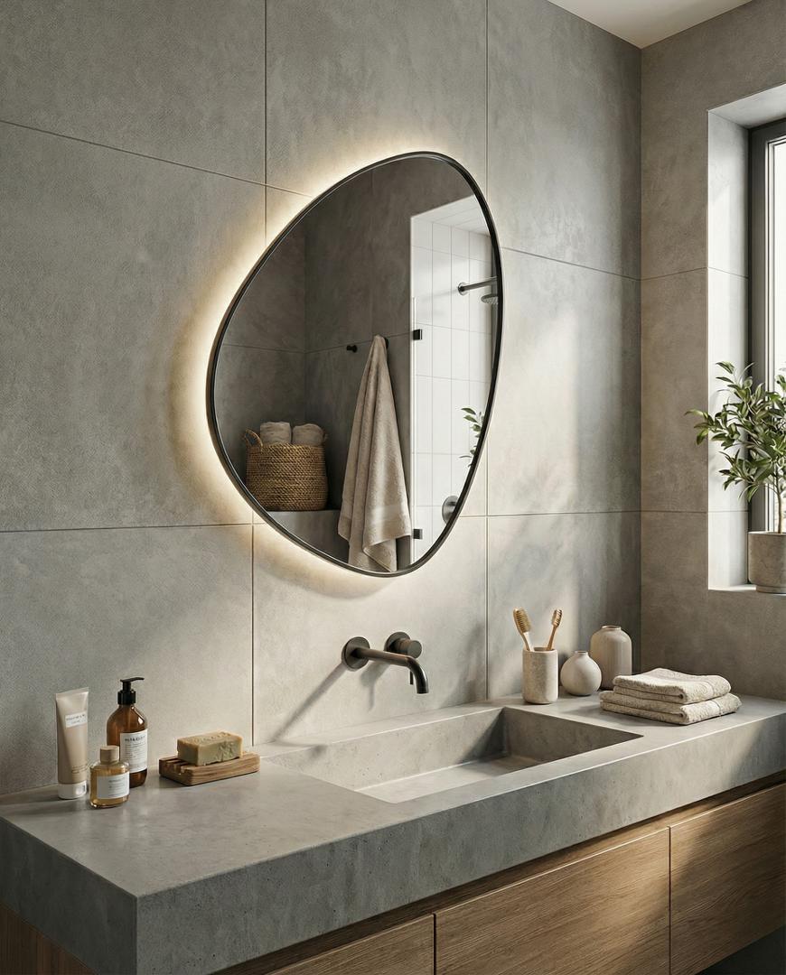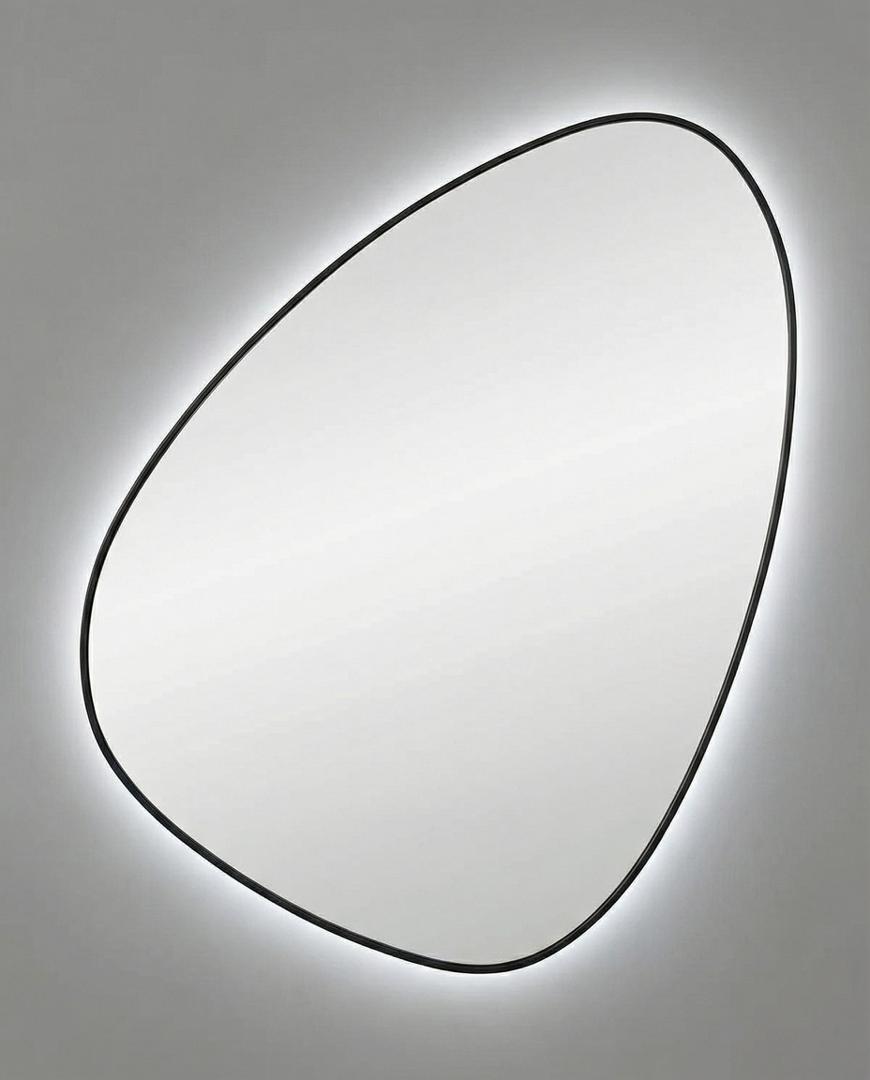 Зеркало в тонкой раме с интерьерной, фоновой подсветкой, рассотяние от стены всего 9 мм. Премиум лента COB со сплошным свечением, встроенный плоский блок питания 12V с влагозащитой IP67, работа от внешнего выключателя или шнура 220V (идет в комплекте). Температура свечения на выбор 3000K, 4000K, 6000K. Изделия можно использовать в помещениях с повышенной влажностью до 70%.