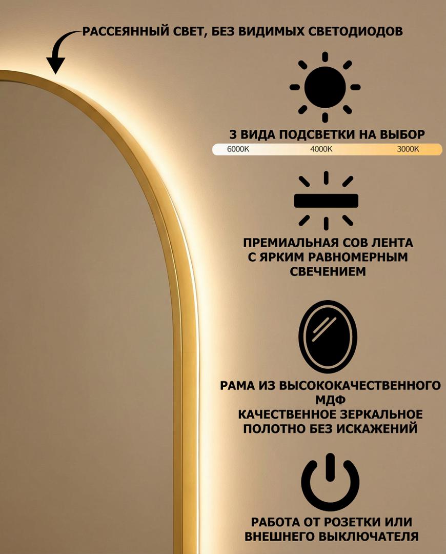 Зеркало Art-Zerkalo Fancy Oval LED Gold Зеркало в раме с подсветкой арт. SM193LGL
