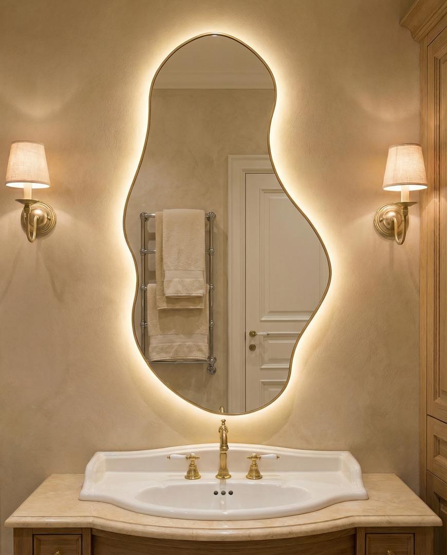 Зеркало Art-Zerkalo Lake LED Gold Зеркало в раме с подсветкой арт. SM124LGL
