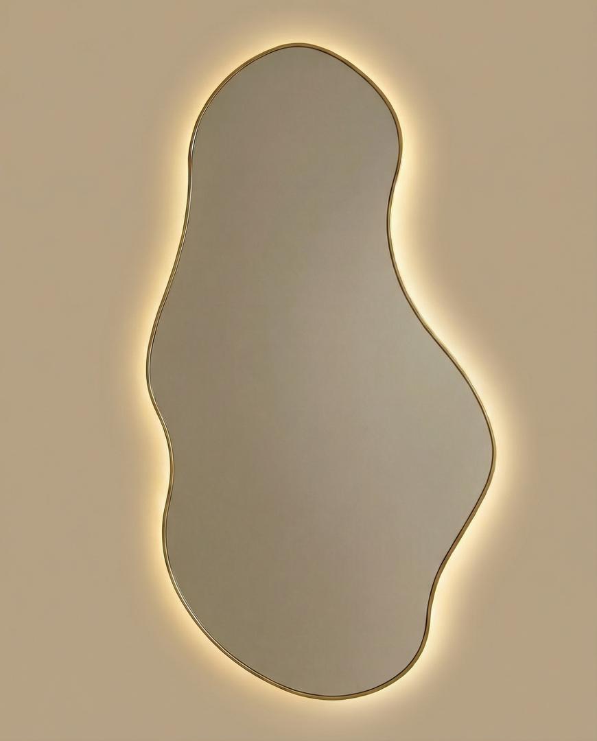 Зеркало в тонкой раме с интерьерной, фоновой подсветкой, рассотяние от стены всего 9 мм. Премиум лента COB со сплошным свечением, встроенный плоский блок питания 12V с влагозащитой IP67, работа от внешнего выключателя или шнура 220V (идет в комплекте). Температура свечения на выбор 3000K, 4000K, 6000K. Изделия можно использовать в помещениях с повышенной влажностью до 70%. Навешивается вертикально и перевернуто.
