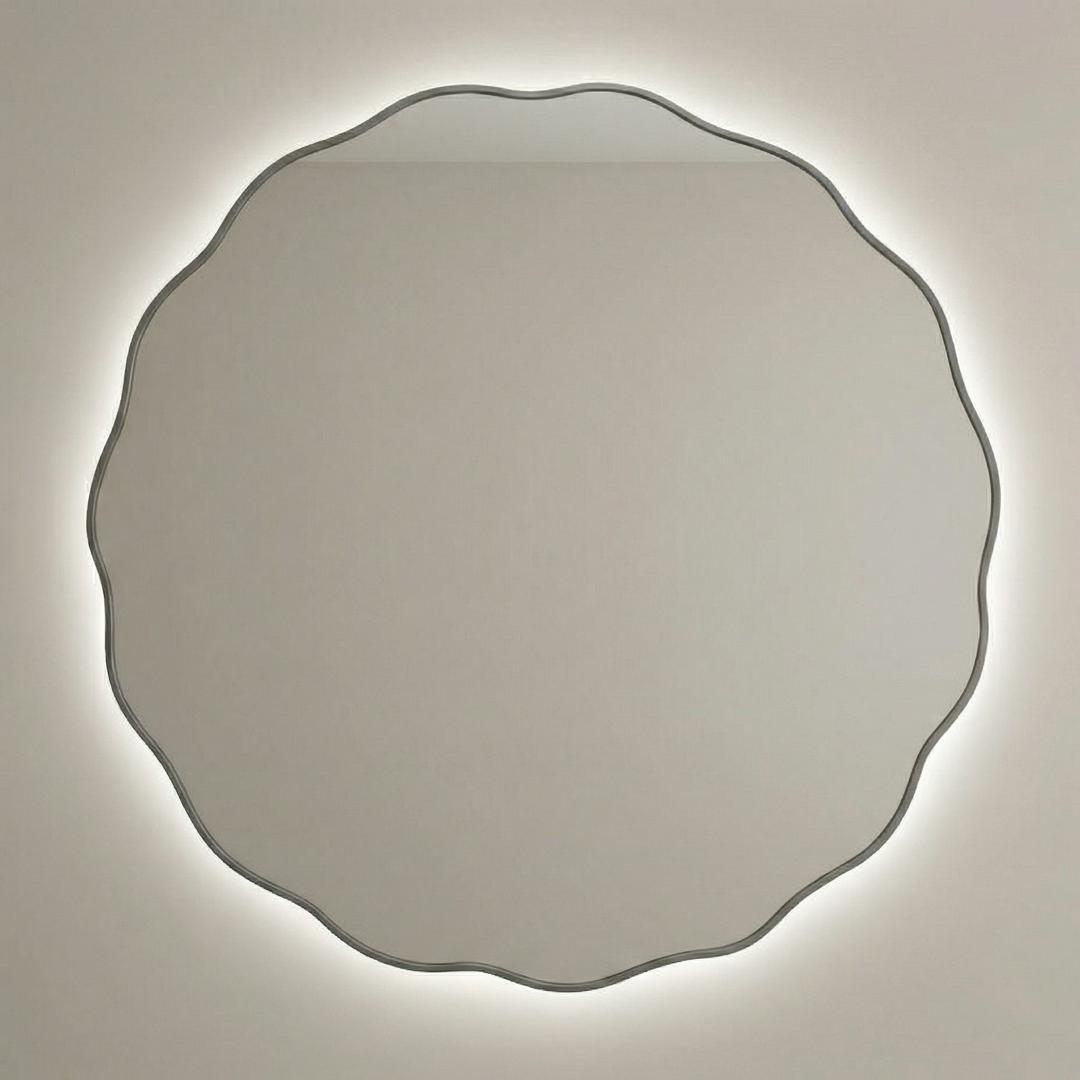 Зеркало в тонкой раме с интерьерной, фоновой подсветкой, рассотяние от стены всего 9 мм. Премиум лента COB со сплошным свечением, встроенный плоский блок питания 12V с влагозащитой IP67, работа от внешнего выключателя или шнура 220V (идет в комплекте). Температура свечения на выбор 3000K, 4000K, 6000K. Изделия можно использовать в помещениях с повышенной влажностью до 70%.