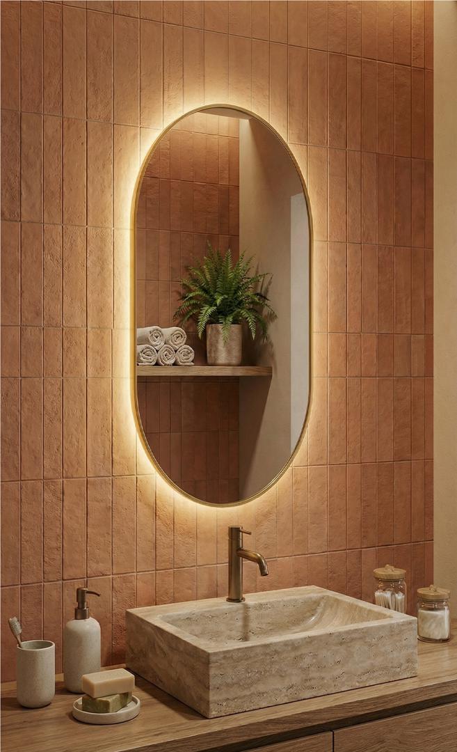 Зеркало в тонкой раме с интерьерной, фоновой подсветкой, рассотяние от стены всего 9 мм. Премиум лента COB со сплошным свечением, встроенный плоский блок питания 12V с влагозащитой IP67, работа от внешнего выключателя или шнура 220V (идет в комплекте). Температура свечения на выбор 3000K, 4000K, 6000K. Изделия можно использовать в помещениях с повышенной влажностью до 70%. Навешивается вертикально и горизонтально.