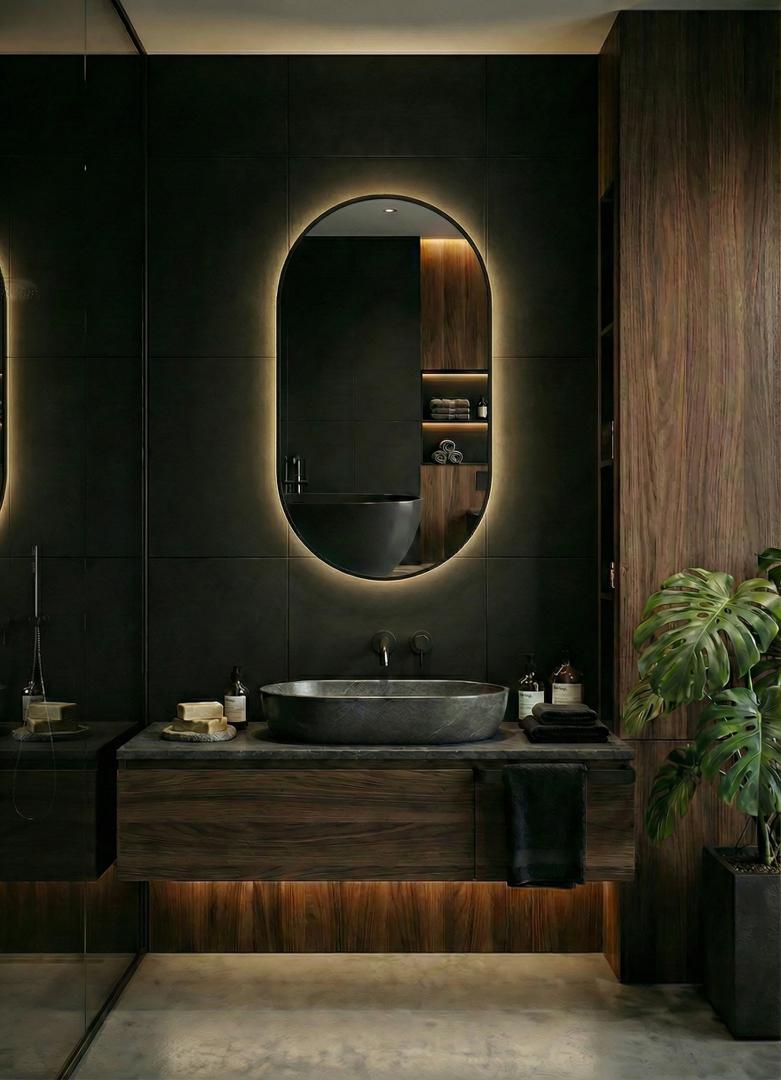 Зеркало Art-Zerkalo Kapsel M LED Black Зеркало в раме с подсветкой арт. SM004LBL