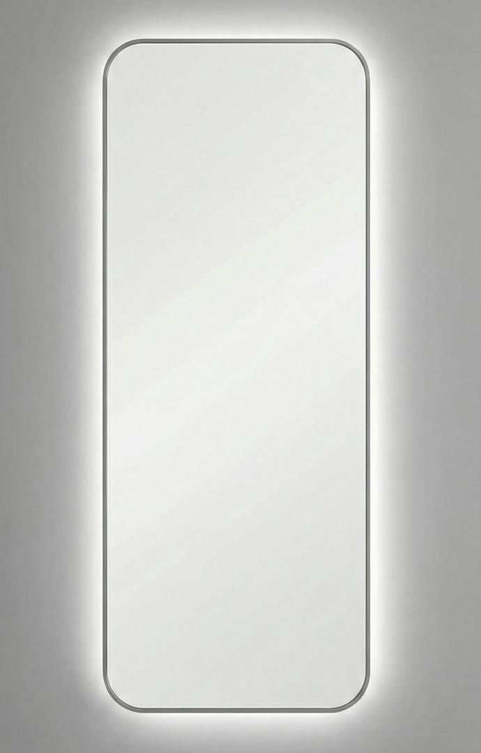 Зеркало в тонкой раме с интерьерной, фоновой подсветкой, рассотяние от стены всего 9 мм. Премиум лента COB со сплошным свечением, встроенный плоский блок питания 12V с влагозащитой IP67, работа от внешнего выключателя или шнура 220V (идет в комплекте). Температура свечения на выбор 3000K, 4000K, 6000K. Изделия можно использовать в помещениях с повышенной влажностью до 70%. Навешивается вертикально и горизонтально.