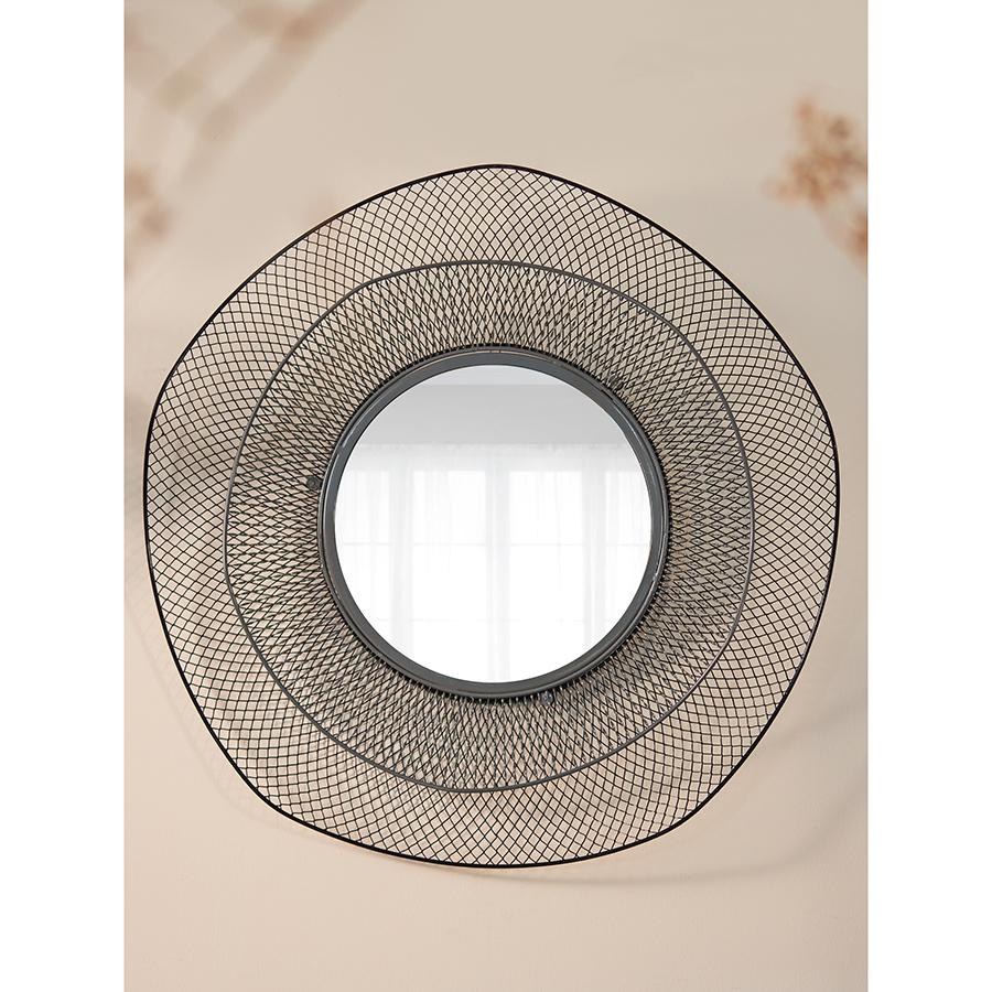 Зеркало Vinger способно преобразить любое помещение. Оно станет ярким акцентом в современных и минималистичных пространствах, добавит изысканность в классические и ретро-дизайны. Особенности и преимущества: - Зеркало круглой формы делает интерьер мягче и гармоничнее, отлично подчеркивает любой выбранный стиль. - Рама из железной сетки обеспечивает прочность и долговечность конструкции, а также создает элегантный и современный образ. - Настенный монтаж позволяет экономить место, что особенно актуально для малогабаритных помещений. Материалы: железо, стекло. Диаметр: 79 см. Цвет: черный. Пыль и загрязнения можно удалять при помощи мягкого влажного материала. Рекомендуется использовать средство для мытья зеркал.