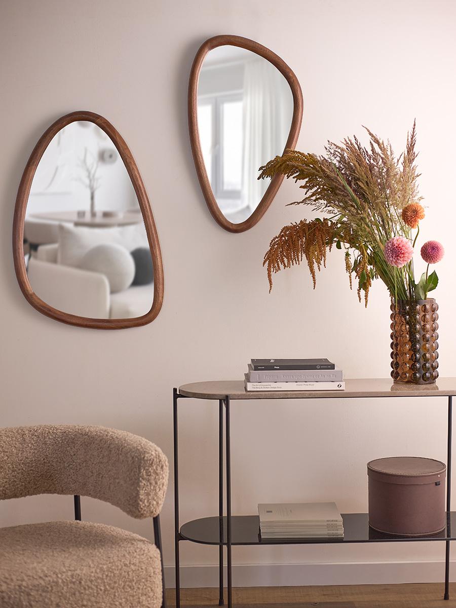 Зеркало настенное Torhill с рамой из древесины манго – прекрасный способ оживить пространство, а также добавить в интерьер ощущение гармонии и природной элегантности. Особенности и преимущества: - Лаконичная рама из прочной и устойчивой к износу древесины манго. - Универсальный дизайн, актуальный для современных, классических и ретро-интерьеров. - Интересная форма, которая привлекает внимание и может использоваться в качестве акцента в различных композиционных решениях. - Экологичные материалы, обеспечивающие безопасную эксплуатацию. ! Обращаем ваше внимание, что этот предмет изготовлен вручную и может быть не идеален. Небольшие неровности, потертости и различия в цвете – это не брак, а индивидуальная особенность товара, произведенного ручным способом. Материалы: стекло, древесина манго. Размеры: 3х70х42 см. Цвет: коричневый. Пыль и загрязнения можно удалять при помощи мягкого влажного материала. Рекомендуется использовать средство для мытья зеркал.