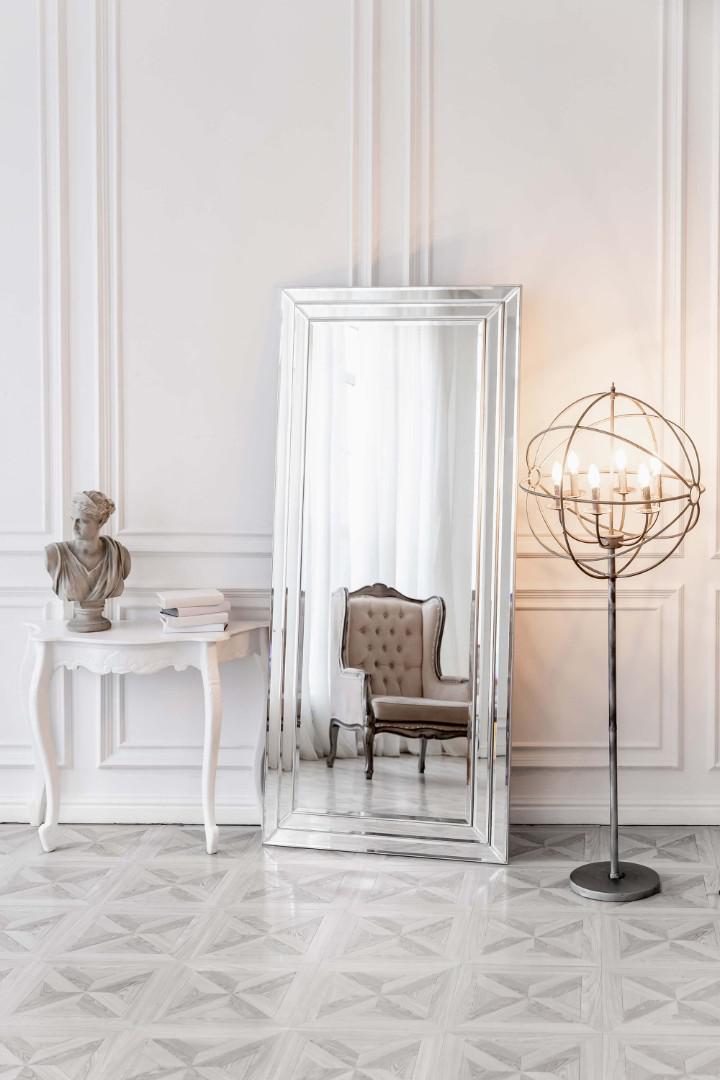 Зеркало Ruiz от производителя Bountyhome – модель прямоугольной формы, в полный рост. Основание сделано из МДФ, окрашенного в серебряный цвет. Основное зеркальное полотно выдается вперед, делая зеркало объемным. Двойная зеркальная рама в виде каскада создает интересный визуальный эффект. Все зеркальные элементы фацетированы.Возможно изготовление по Вашим цветам и размерам.Бренд: BountyHome.Страна изготовления: Россия.Материал: классическое зеркало, мдф.