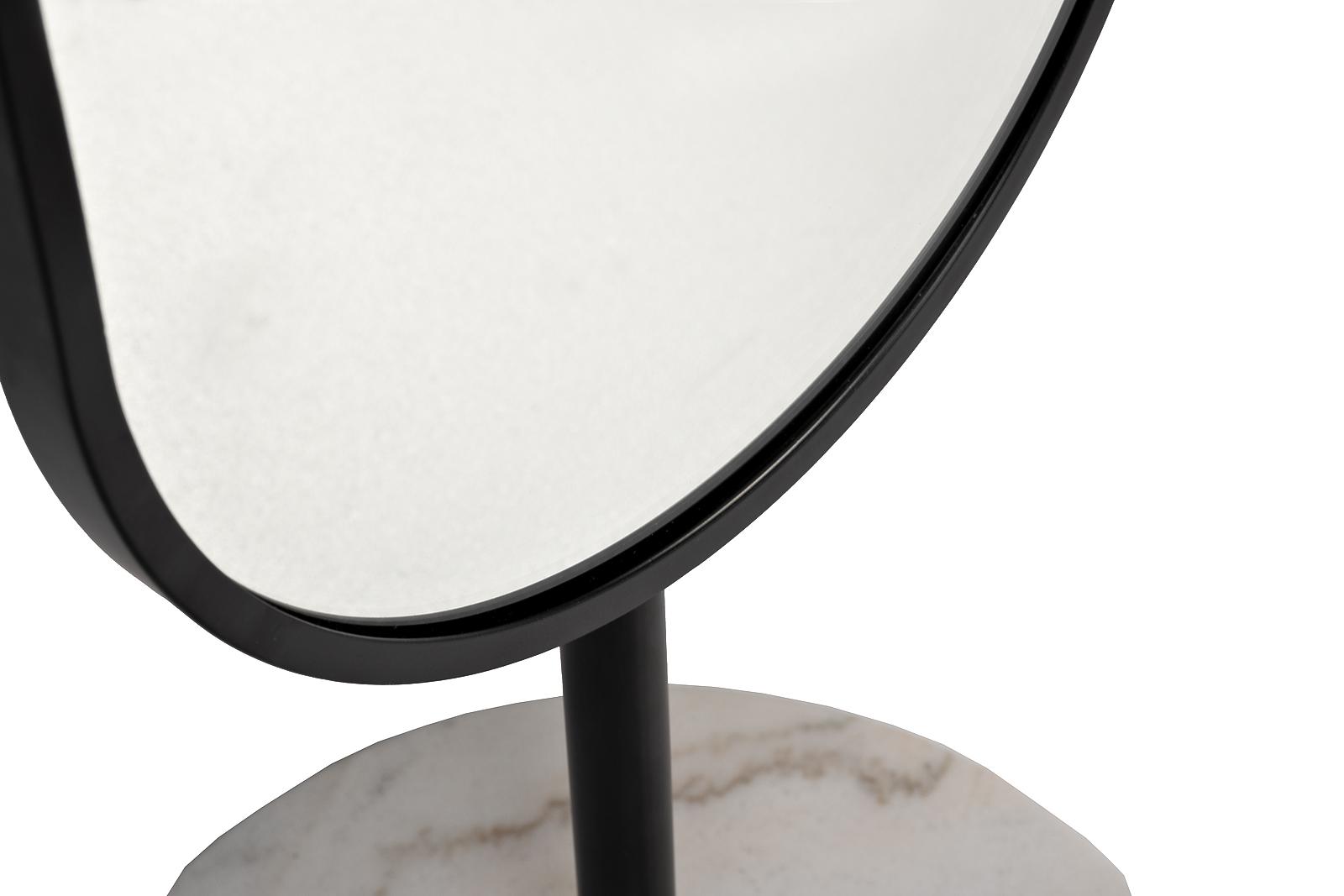 Материал - зеркало, МДФ, металл черного цвета, подставка мраморная