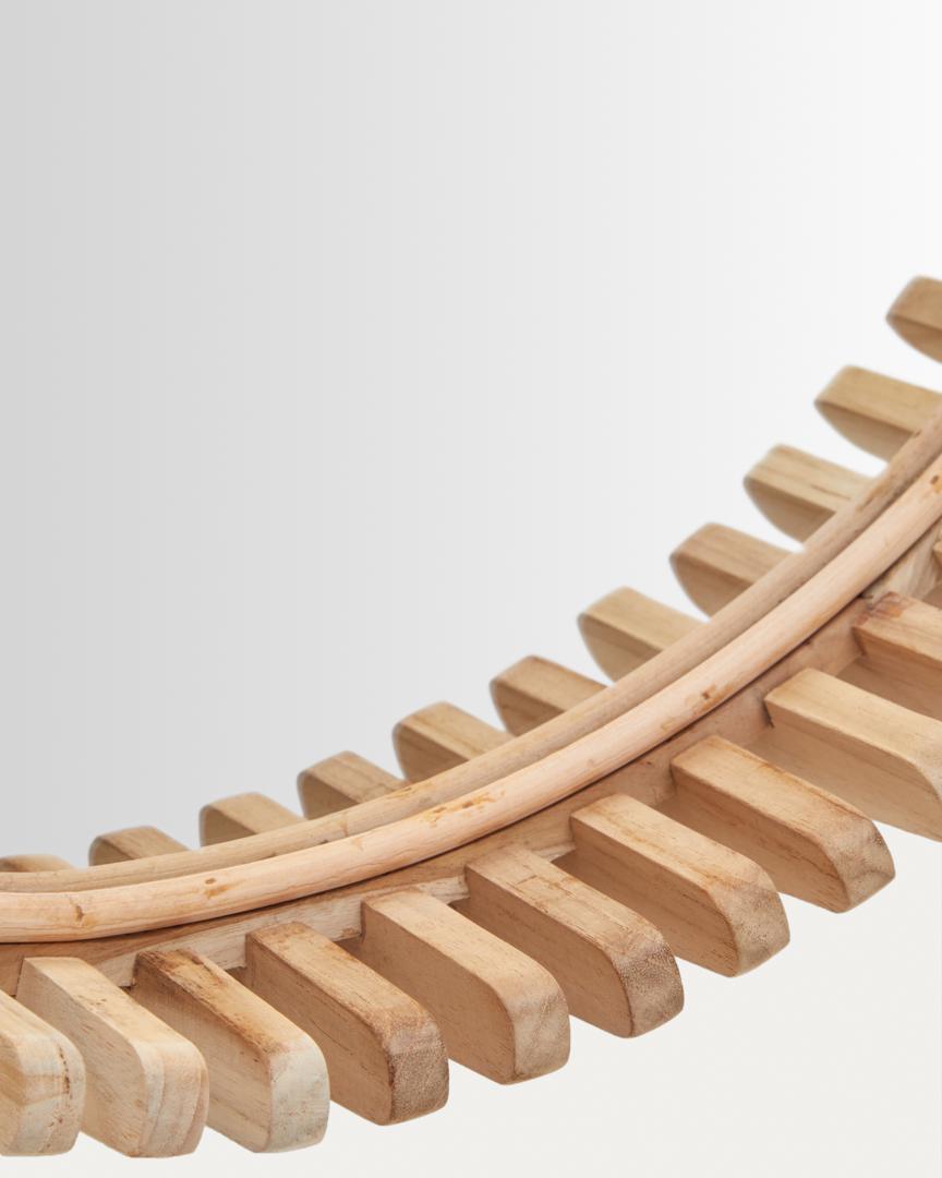 Зеркало Polke имеет раму из резных частей, расположенных одна за другой, изготовленных из массива натурального тикового дерева. Это изделие, диаметр которого можно адаптировать к любому пространству, а дизайн соответствует любому модному стилю.