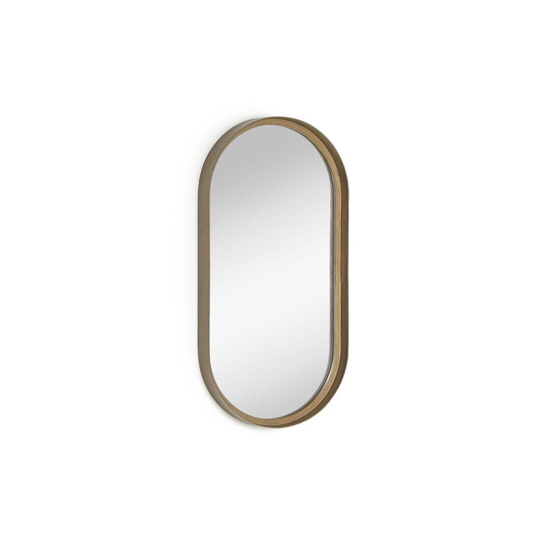 Зеркало Tiare имеет удлиненную форму, чтобы подчеркнуть часть вашего наряда, а также стальную раму золотистого цвета с потрепанной отделкой.