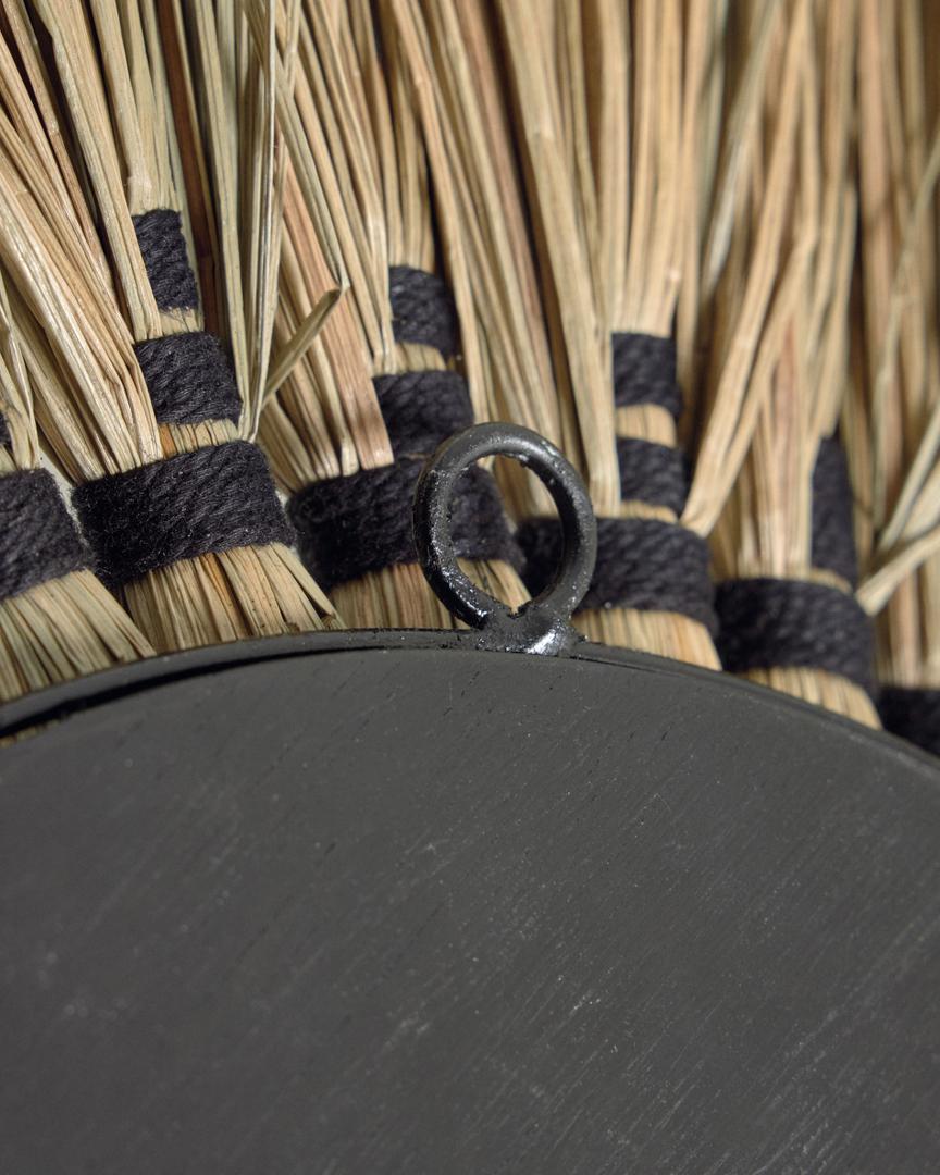 Это уникальное изделие создано вручную из хлопка и полос мендонга - натурального волокна, сотканного вручную.