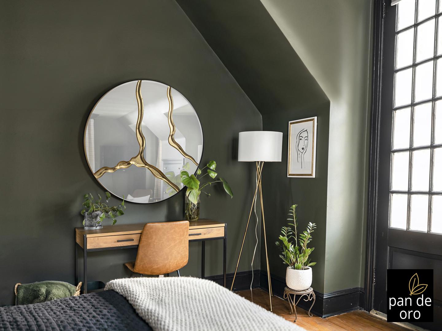 Круглое зеркало с задней частью из МДФ, отделка ЗОЛОТО.