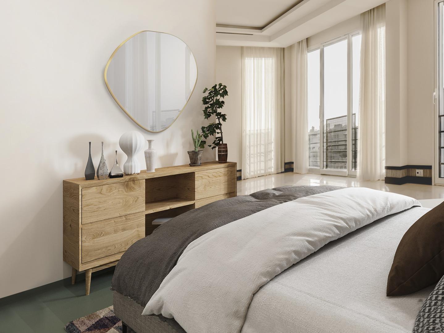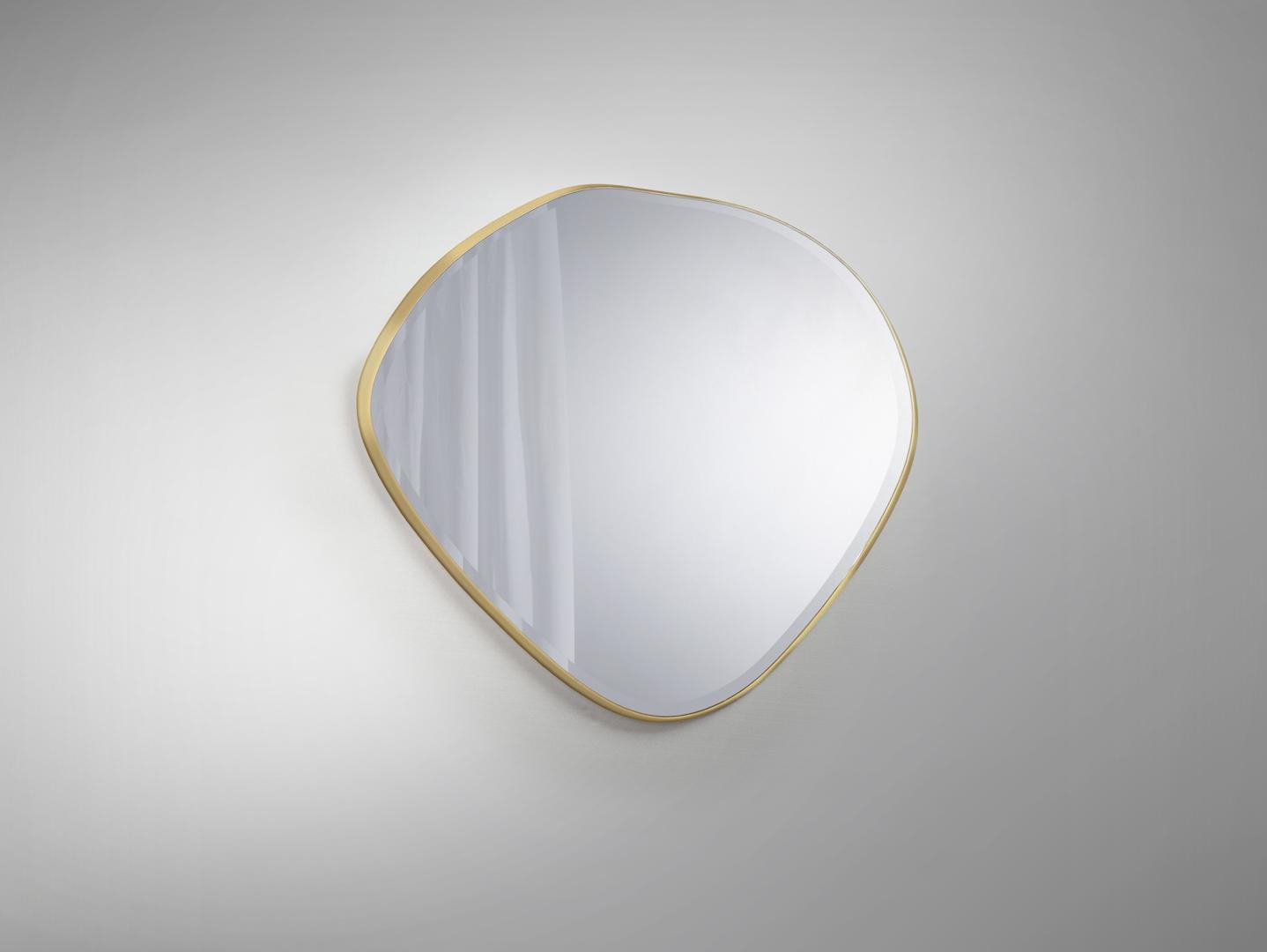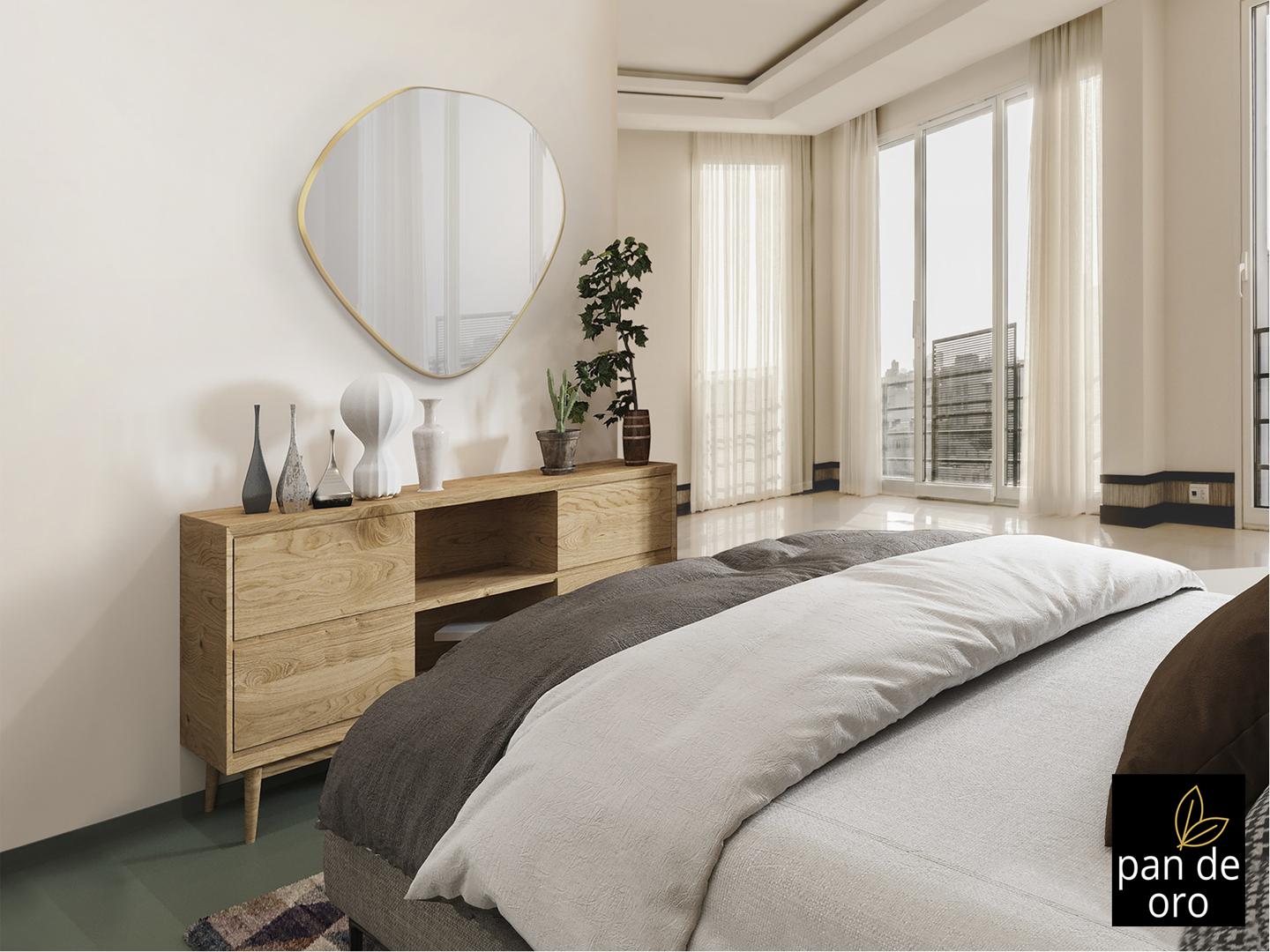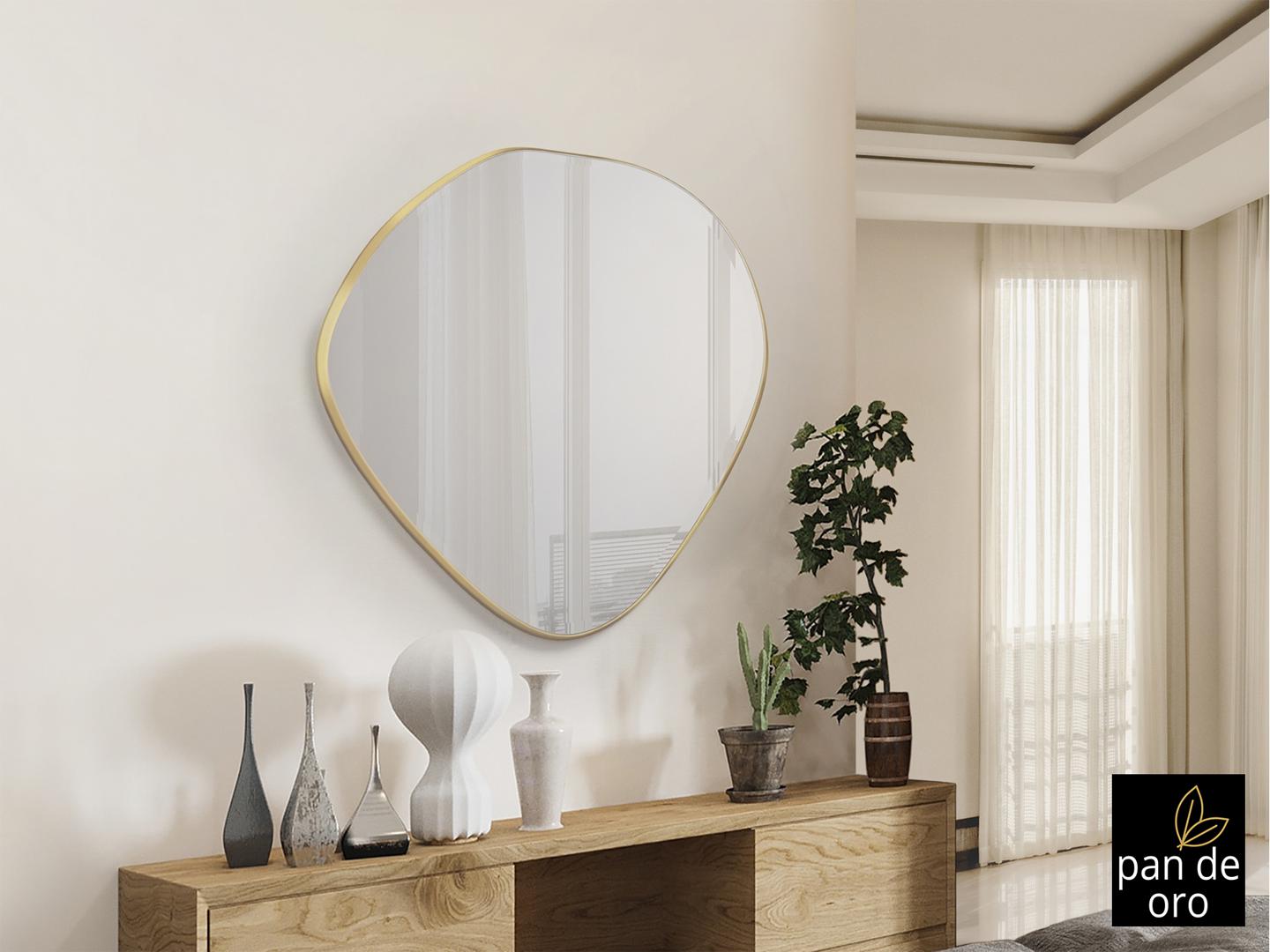 Зеркало неправильной овальной формы, в раме МДФ с отделкой СУСАЛЬНОЕ ЗОЛОТО. Зеркальная пластина с фацетом.