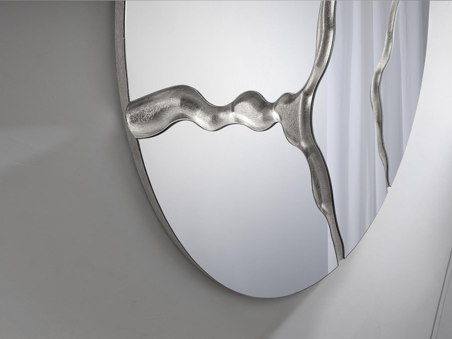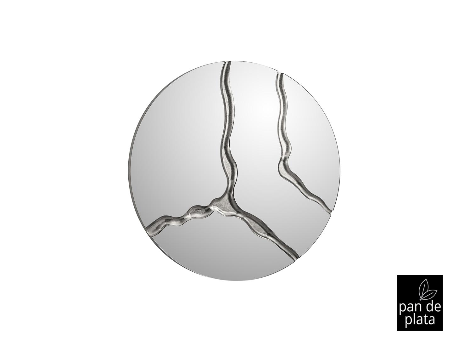 Круглое зеркало с задней частью МДФ, отделка SILVER LEAVES.