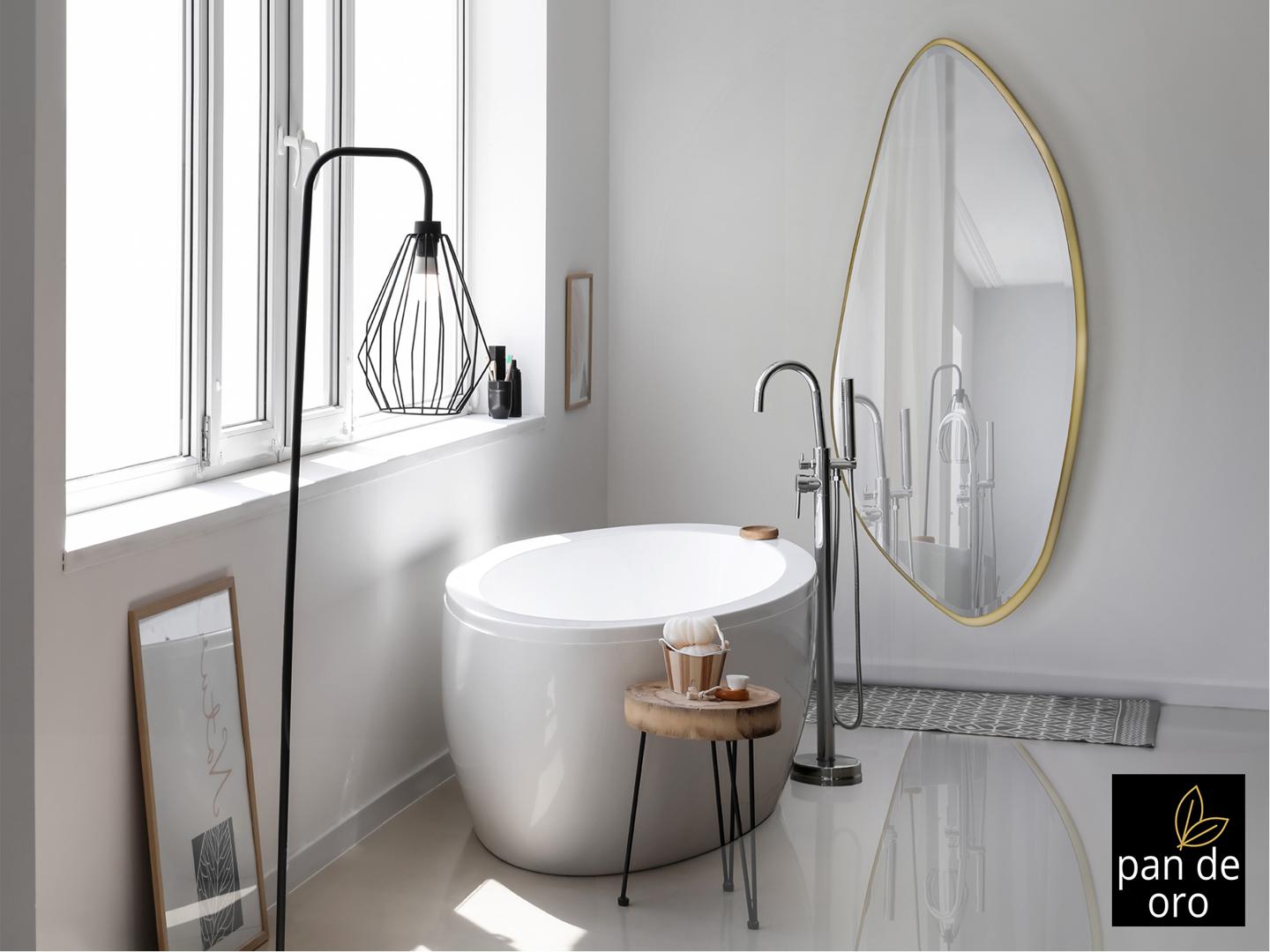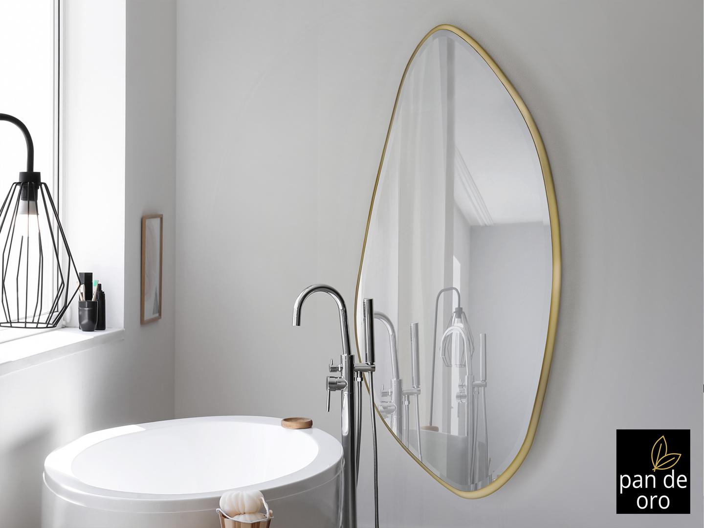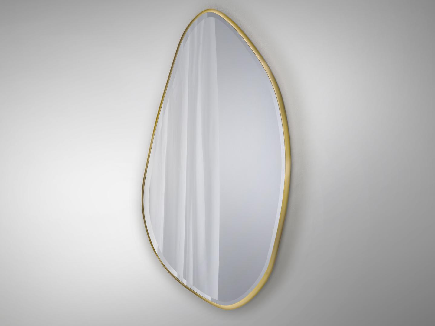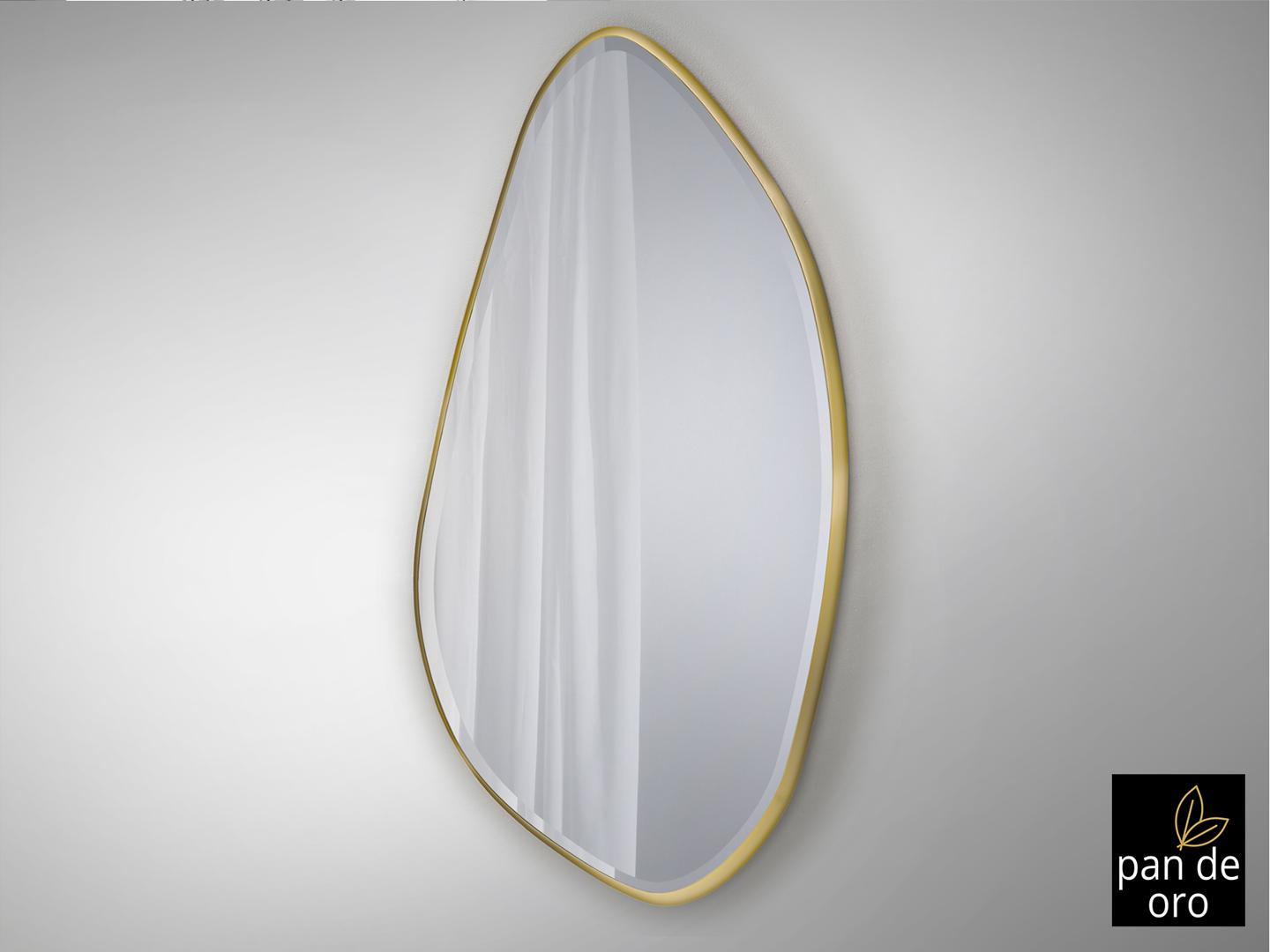Зеркало неправильной овальной формы, в раме МДФ с отделкой СУСАЛЬНОЕ ЗОЛОТО. Зеркальная пластина с фацетом.