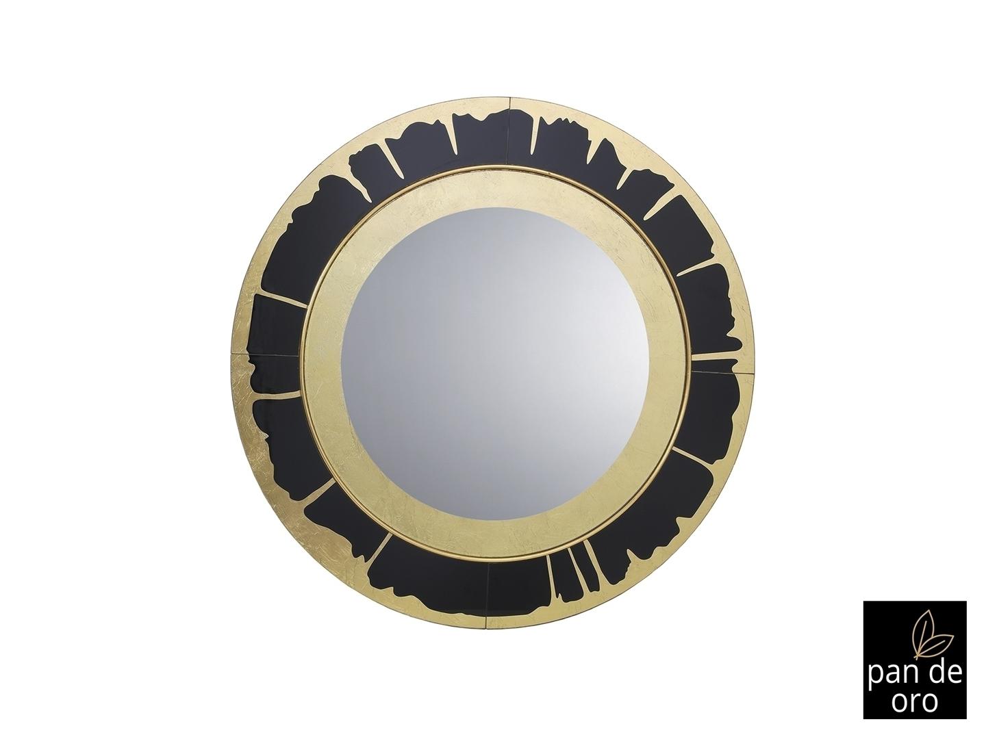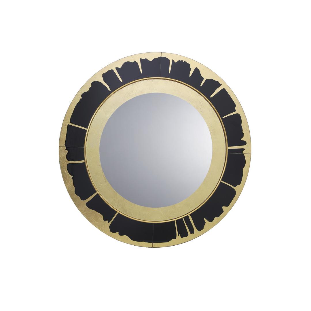 Зеркало с центральной пластиной и стеклянной рамой с деталями цвета СУСАЛЬНОЕ ЗОЛОТО и черного цвета. Задняя часть МДФ покрыта черным лаком.
