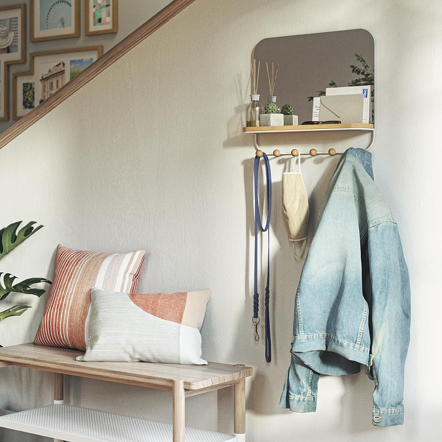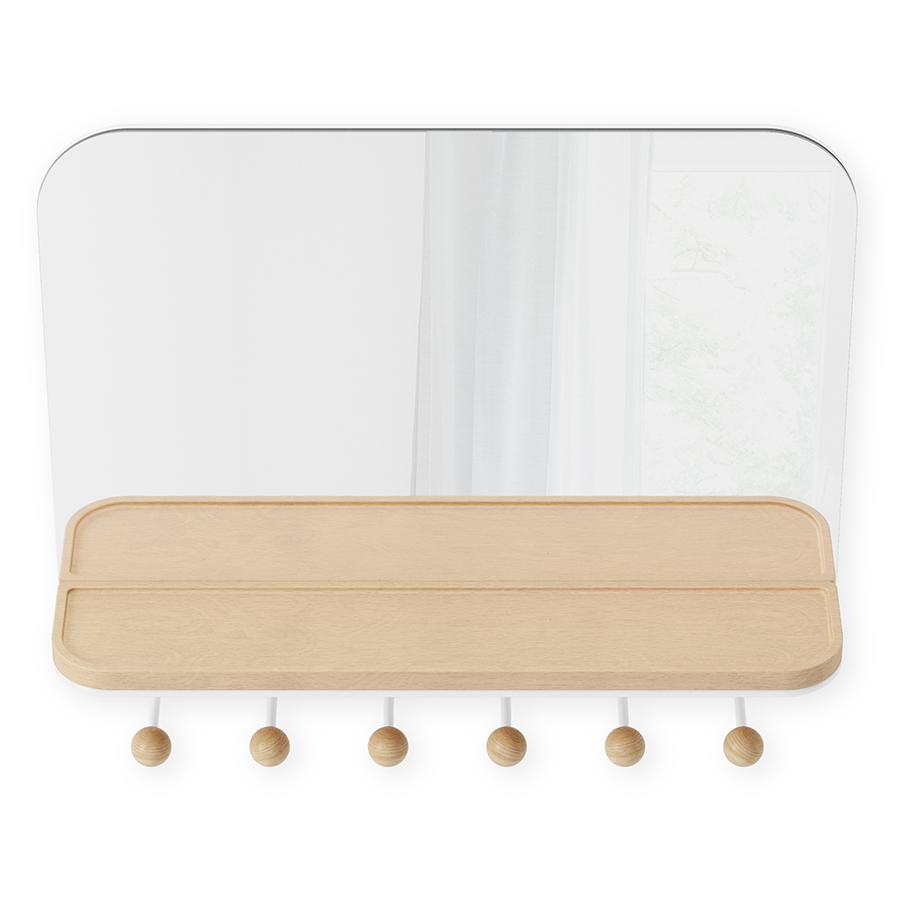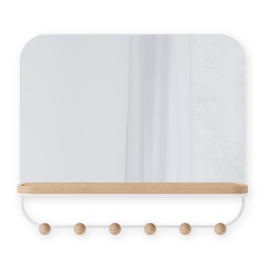 Зеркало Umbra Зеркало с крючками для аксессуаров estique, 46х41 см, белое/натуральное дерево арт. 1018031-660