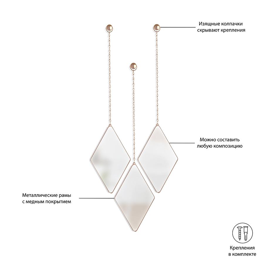Зеркало Umbra Набор зеркал dima, медь, 3 шт. арт. 358777-880