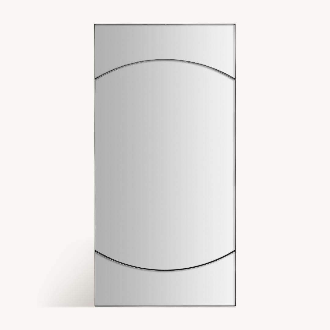 Зеркало Тота в современном стиле, изготовлено из черного железа, совмещено с зеркалом. Ширина: 80 см, Глубина: 4 см, Высота: 160 см
