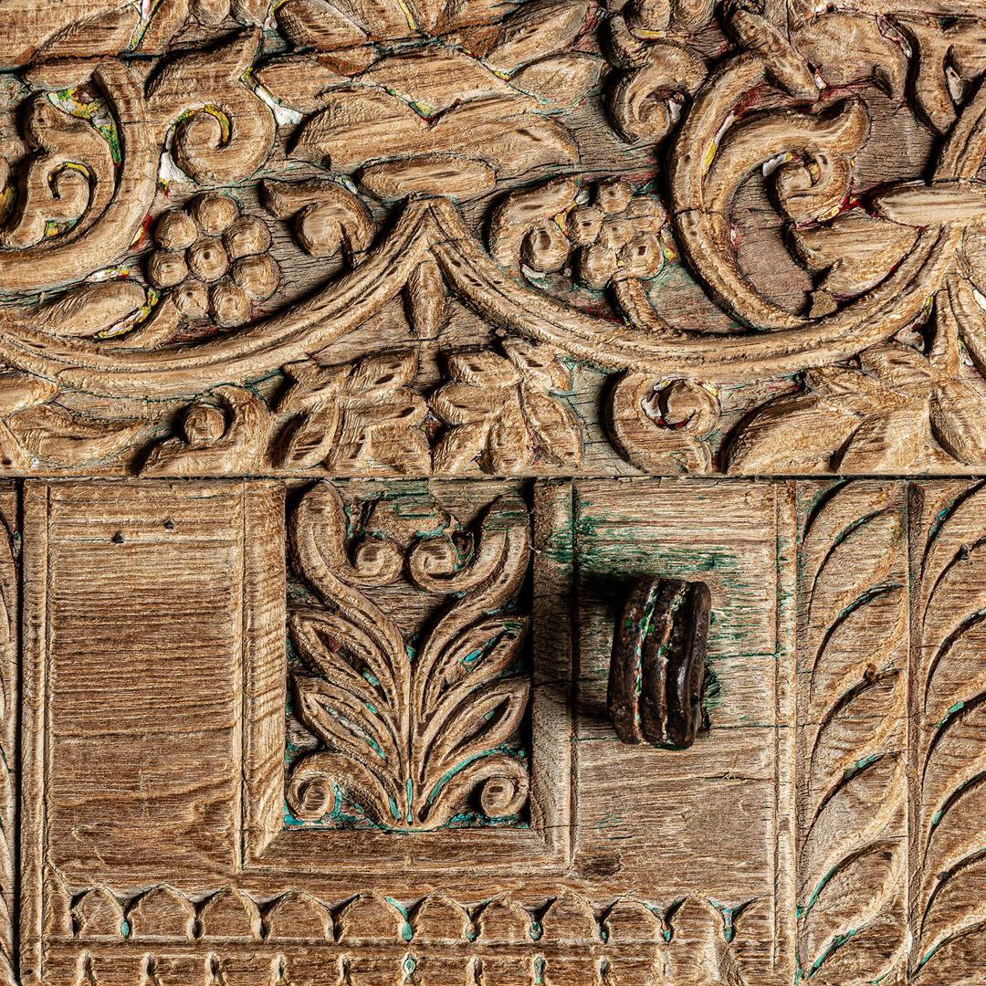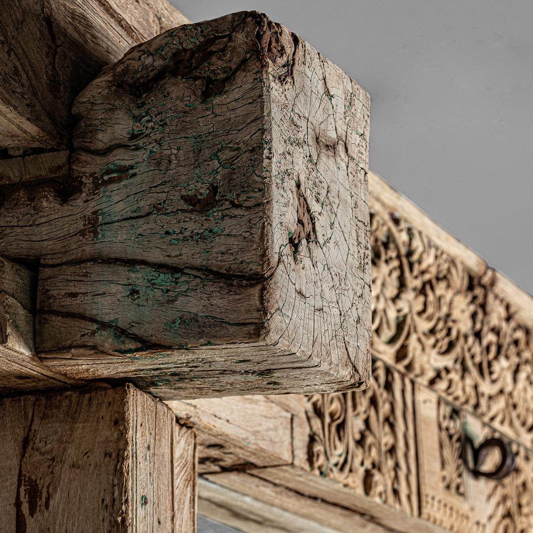 Зеркальный серебристый цвет, натуральный потертый цвет, этнический стиль. Изготовлен из тикового дерева, в сочетании с зеркалом.