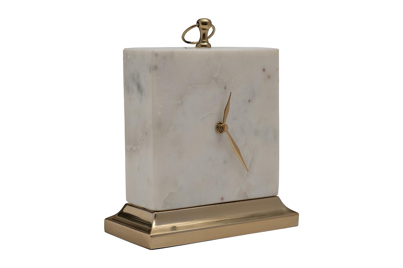 description-full - Изысканные настольные часы из натурального мрамора станут стильным украшением рабочего стола в кабинете руководителя или консоли в гостиной, оформленной в стиле ар-деко или неоклассики. Лаконичная форма с четкими гранями, благородная фактура камня, сдержанный декор из полированного металла создают впечатление устойчивости и надежности. Часы из мрамора – это не только функциональный предмет, но и символ вечности и непреходящих ценностей.