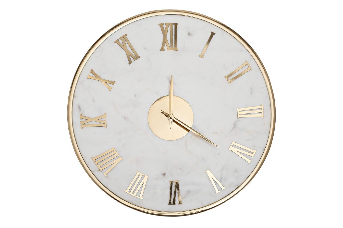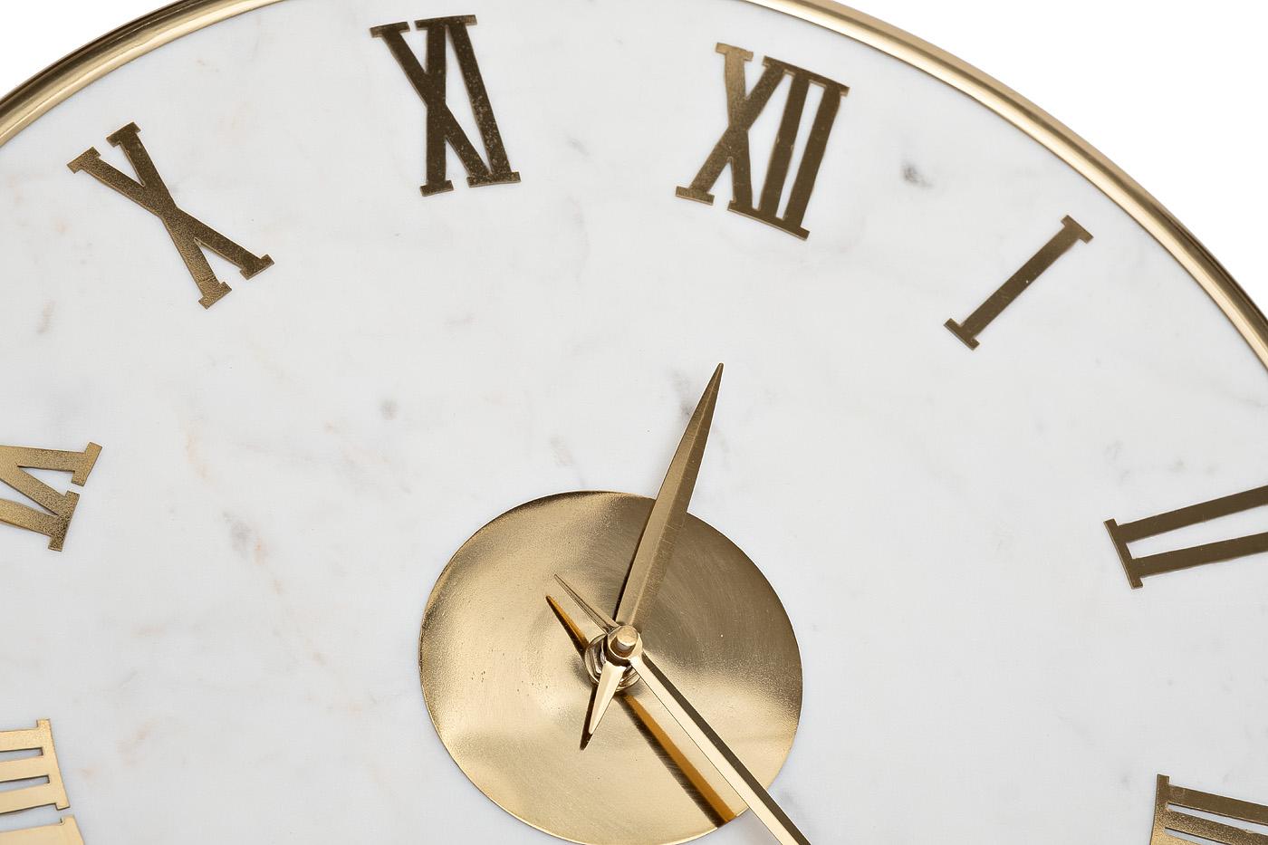 description-full - Круглые настенные часы из белого мрамора с золотым обрамлением станут стильным акцентом в интерьере гостиной, кабинета или столовой. Благородная фактура камня, лаконичный дизайн, римские цифры цвета золота создают ощущение роскоши и респектабельности. Часы из мрамора и металла цвета золота - это не только функциональный предмет, но и показатель хорошего вкуса и стремления к созданию изысканного и комфортного пространства.