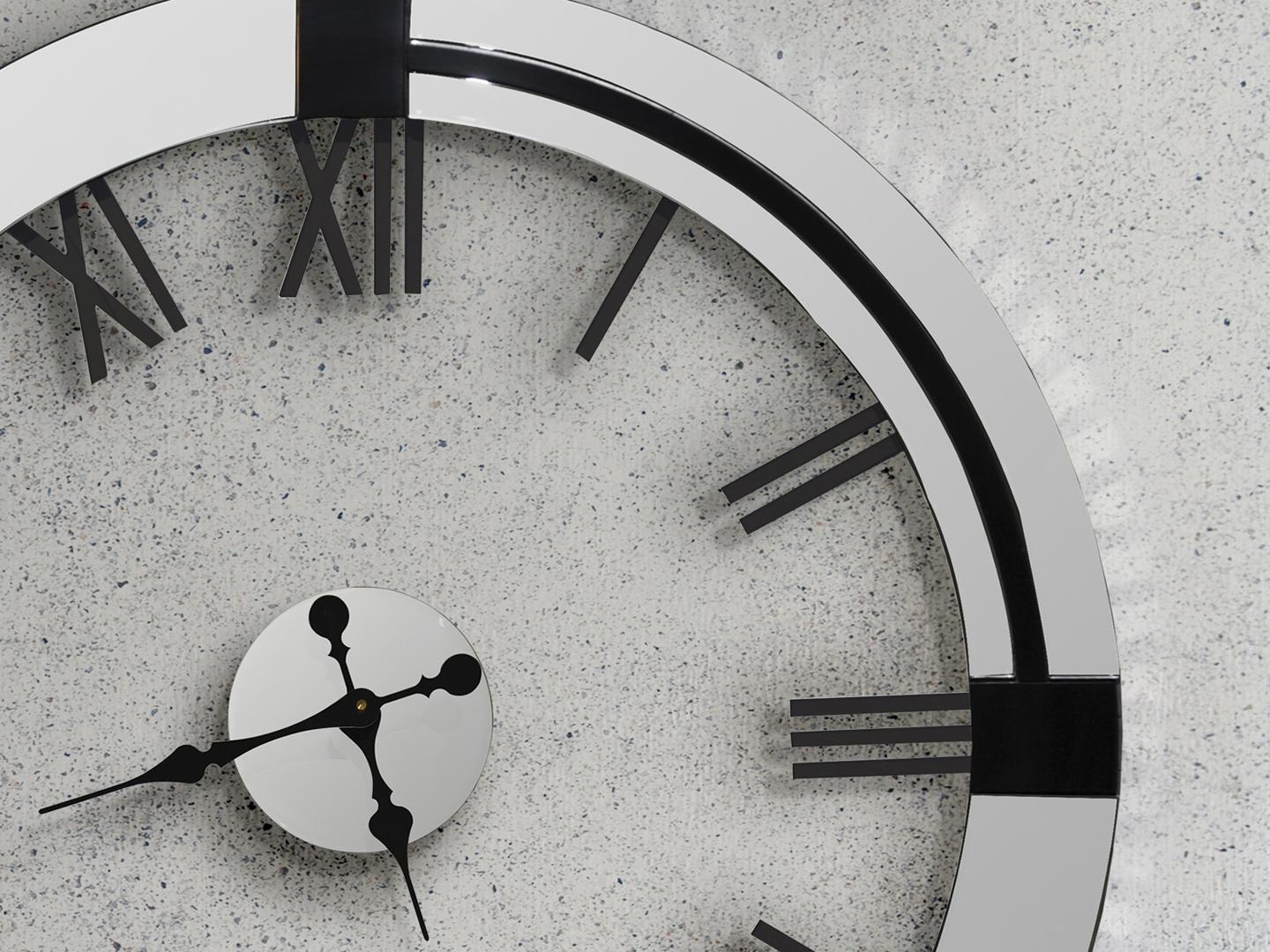 Настенные часы. Бездонная сфера с независимым центральным механизмом. Зеркальное кольцо со скошенной кромкой на лакированной основе DM, цифры и декоративные детали черного цвета. Батарейки в комплект не входят.