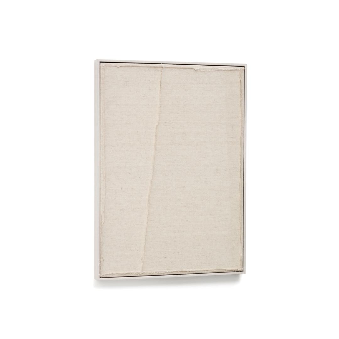 Картина Maha от фабрики La Forma (ex Julia Grup) – абстрактный минимализм для стильных обстановок. Картина Maha – это особый предмет интерьера, который безусловно обратит на себя внимание. Она создана для любителей натуральных материалов – из льна в естественном цвете. Вдохновленная минимализмом, ее дизайн создают сами швы. Выбрав коллекцию Maha, вы превратите свою гостиную в неповторимую галерею! Картина имеет прямоугольную форму. Она создана из льняного полотна, помещенного в деревянную раму. Полотно имеет горизонтальную или вертикальную складку (зависит от выбранного экземпляра). Именно этот защип образует уникальное изображение, но не в цвете, а в фактуре. На задней панели есть металлический крючок для подвеса к стене. Так как ткань имеет натуральную отделку, то для картины следует выбирать помещение с нормальной влажностью и комнатной температурой. Пыль и загрязнения необходимо убирать влажной салфеткой, после чего поверхность требуется сразу насухо протереть. В коллекции Maha представлено четыре картины – две в размере 52 на 72 см (с горизонтальной и вертикальной линией), 82 на 102 см с горизонтальной линией и 110 на 220 см с горизонтальной линией. Для полного вида и максимального эффекта рекомендуем собрать композицию из нескольких картин.