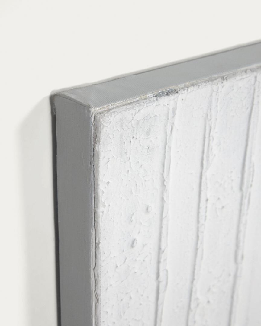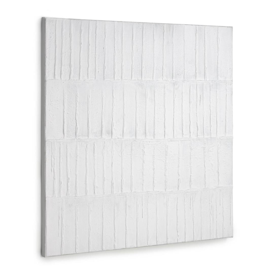Картина Basilisa от фабрики La Forma (ex Julia Grup) – фактурный светлый дизайн для темной стены. Картина Basilisa – это дань уважения прямым линиям. Здесь текстура, рельеф, узоры нарисованы и созданы вручную, что вместе создает потрясающе атмосферный предмет интерьера. Повесьте картину Basilisa там, где хотите выразить себя и свою любовь к дизайну. Картина квадратной формы. Изображение фактурное, нанесено серо-белой матовой краской на холст. Эффект декоративной штукатурки получен за счет ручной работы с использованием техники многократного нанесения слоев краски. Полотном обернута деревянная рама (сосна), которая сзади имеет петлю для подвеса к стене. Размеры: ширина – 90 см, глубина – 3 см, высота – 90 см. Вес изделия – 1,75 кг. Только деликатная сухая чистка. Не вешать на стены в помещениях с высокой влажностью.