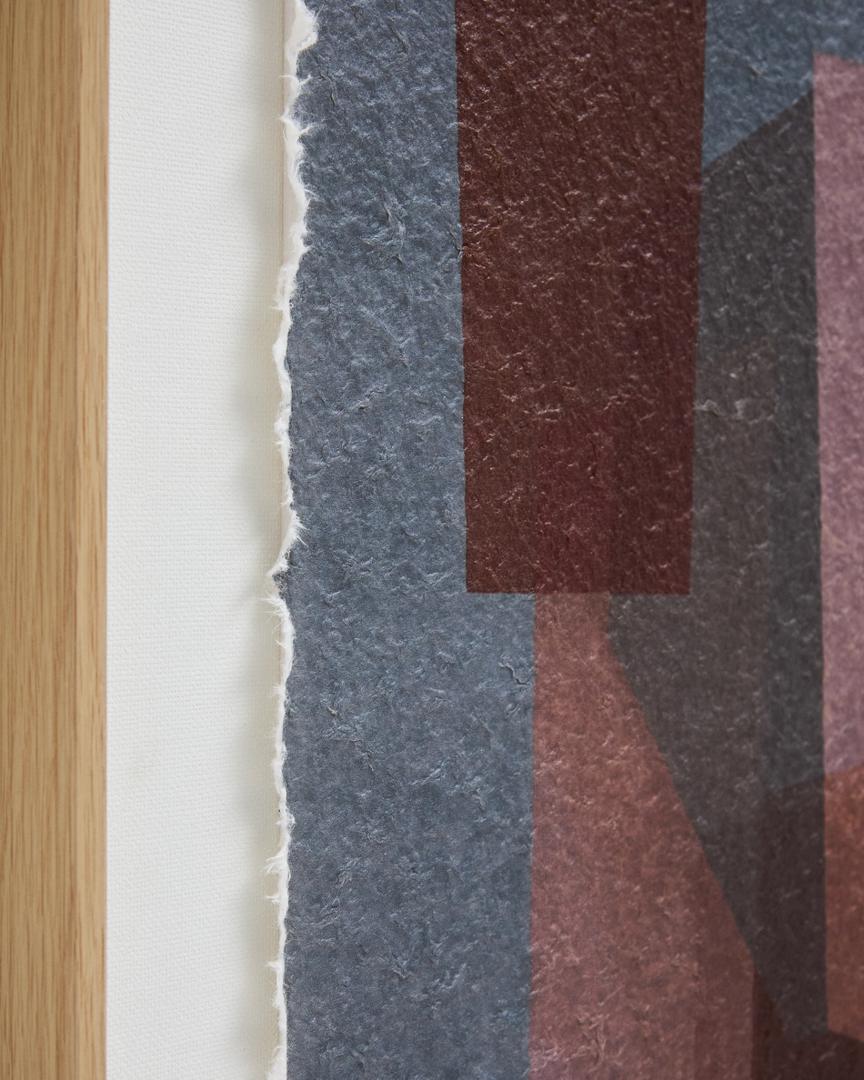 Эта картина вдохновлена кубизмом и архитектурой середины века. Она привносит глубину и индивидуальность в любое пространство благодаря сочетанию геометрических фигур и палитры серых и бордовых тонов. В этом дизайне архитектура деконструируется и синтезируется, чтобы отразить её в уникальном художественном произведении, где наложение плоскостей и игра прозрачности создают визуальный эффект, побуждающий к созерцанию и добавляющий нотку современной изысканности.