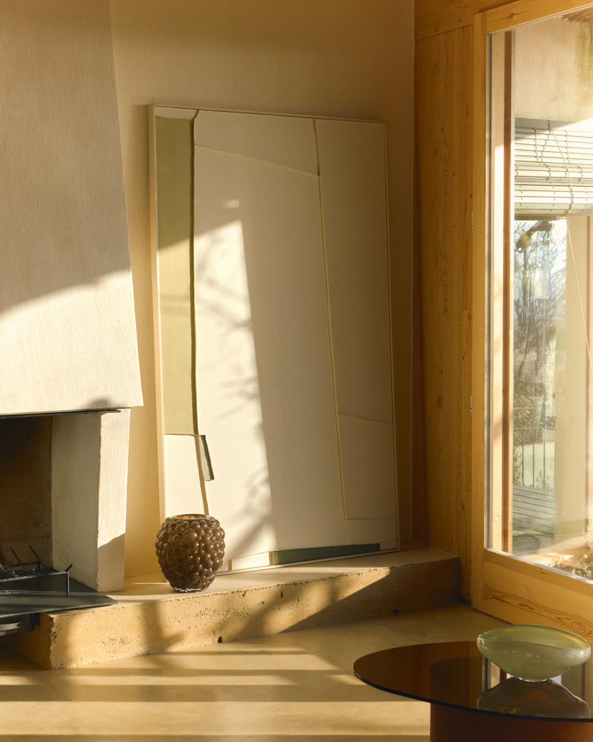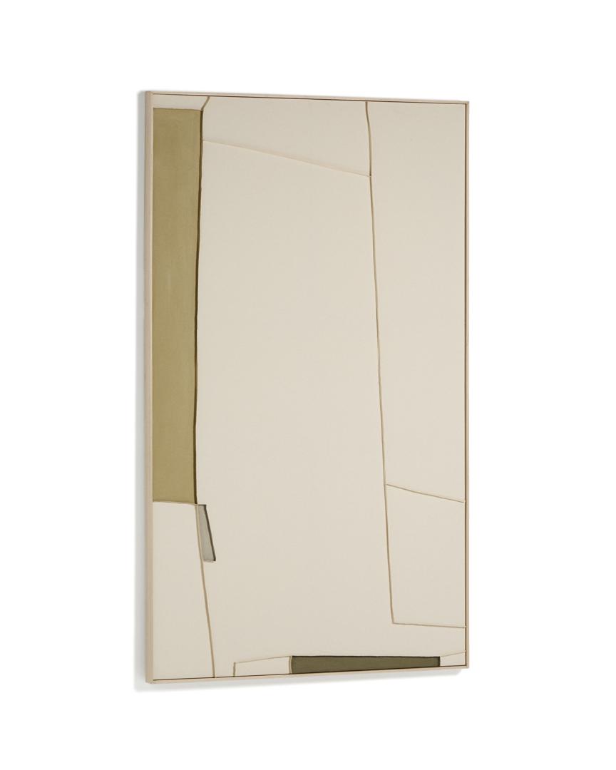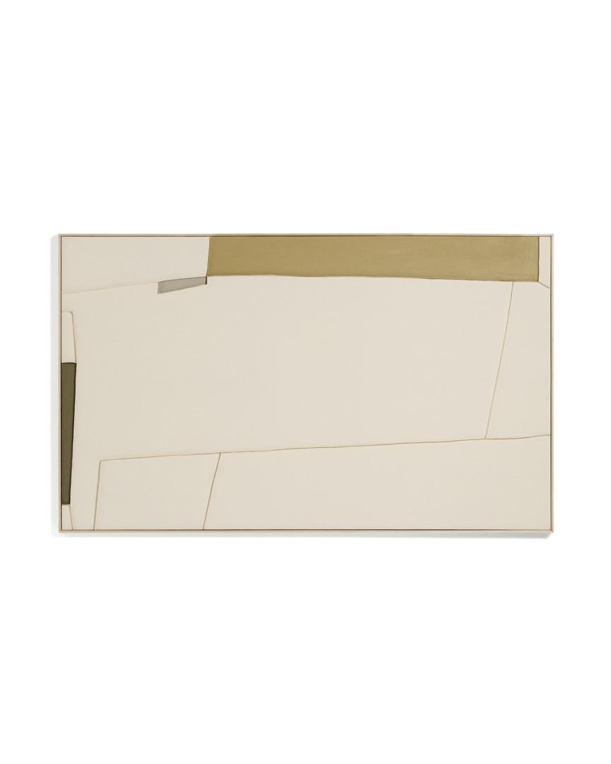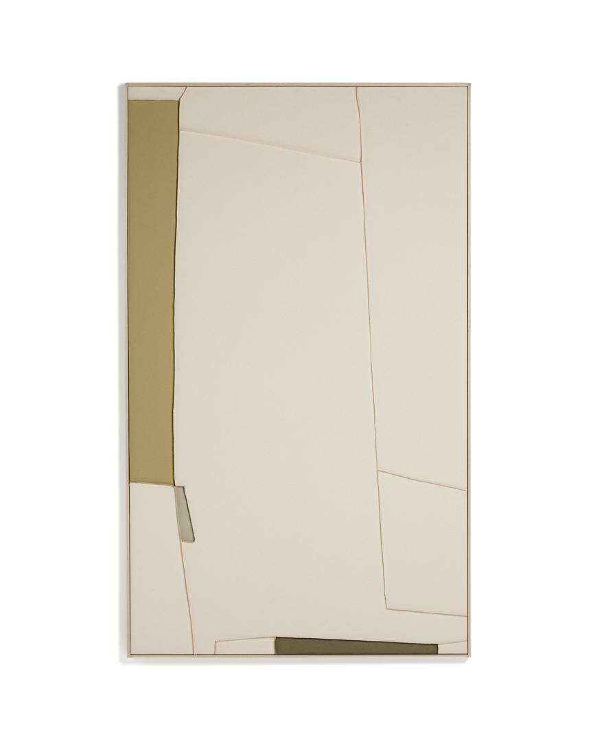 Коллекция Deravia представляет собой абстрактные картины, в которых рельефы, выполненные в технике льняной вышивки, сочетаются с палитрой мягких зеленых и нейтральных тонов, которые вводят цветовые нюансы, не нарушая баланса всей композиции, и привносят в пространство ощущение спокойствия. Каждая картина поставляется в раме с D-образным креплением, подходящим для любого типа стены.