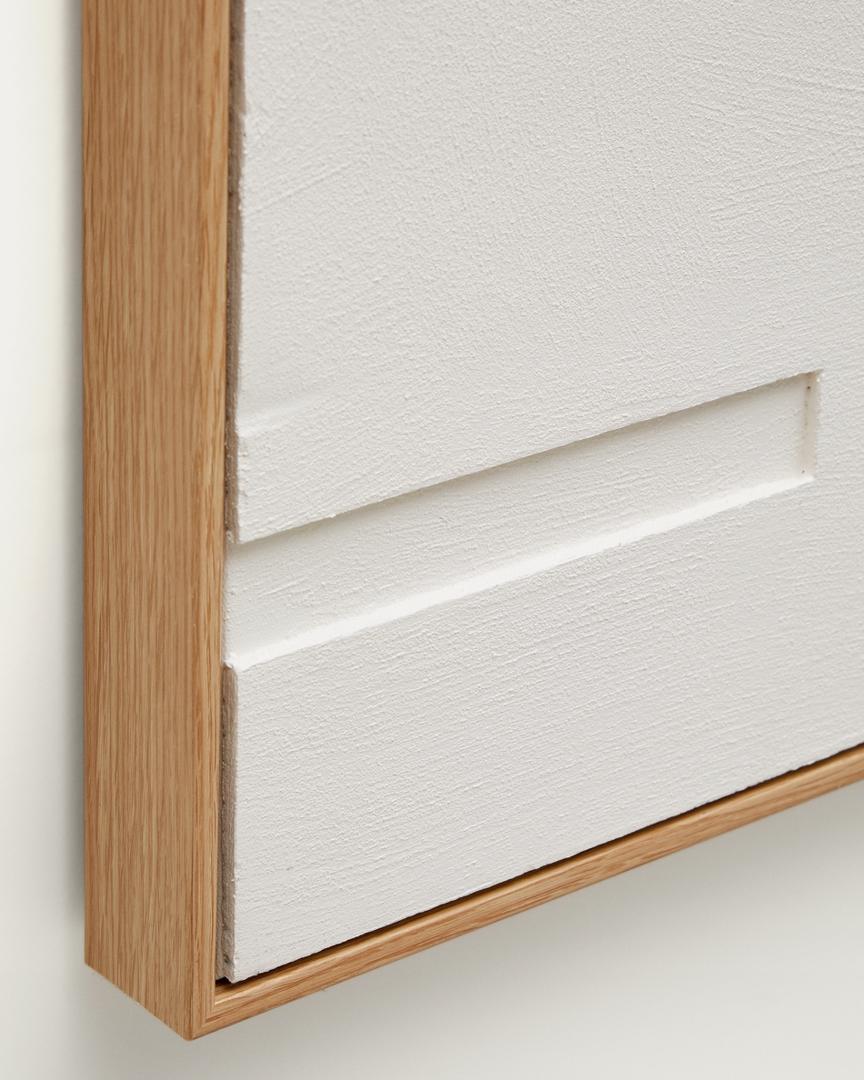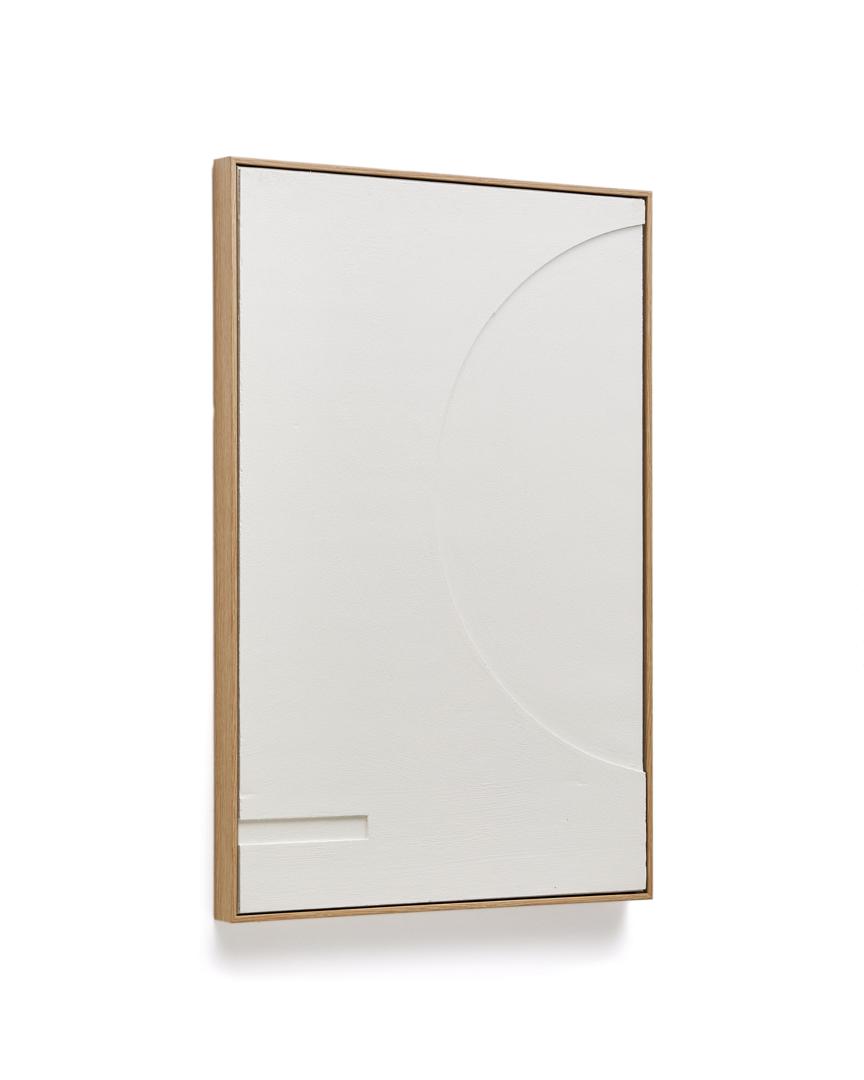 Картина Sefri от фабрики La Forma (ex Julia Grup) – геометрия форм в открытом дизайне. Картина Sefri создаст в вашей комнате уникальную визуальную гармонию и баланс. Она имеет непрерывный открытый рельефный дизайн, подчеркивающий глубину форм. Его композиция создана из чистых геометрических фигур, что выглядит оригинально и свежо. С картиной Sefri ваша обстановка станет другой – рельефы и формы сделают ее стильной! Картина имеет прямоугольную форму. Это скульптурное изделие, созданное из фактурной штукатурки белого цвета. Картина вставлена в деревянную раму цвета дубовой древесины. На задней панели есть металлическая петля для подвеса к стене. Пыль и загрязнения необходимо убирать влажной салфеткой, после чего поверхность требуется сразу насухо протереть. Не следует выбирать для картины стену с постоянным воздействием прямых солнечных лучей и высокой влажностью. Размеры: ширина – 60 см, высота – 90 см, глубина – 4,5 см. Вес изделия – 2,3 кг. Картина предназначена для эксплуатации только в помещении. В коллекции Sefri представлено два варианта композиций.