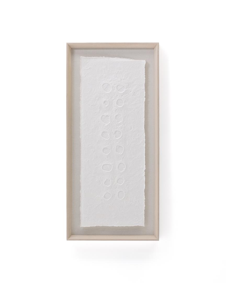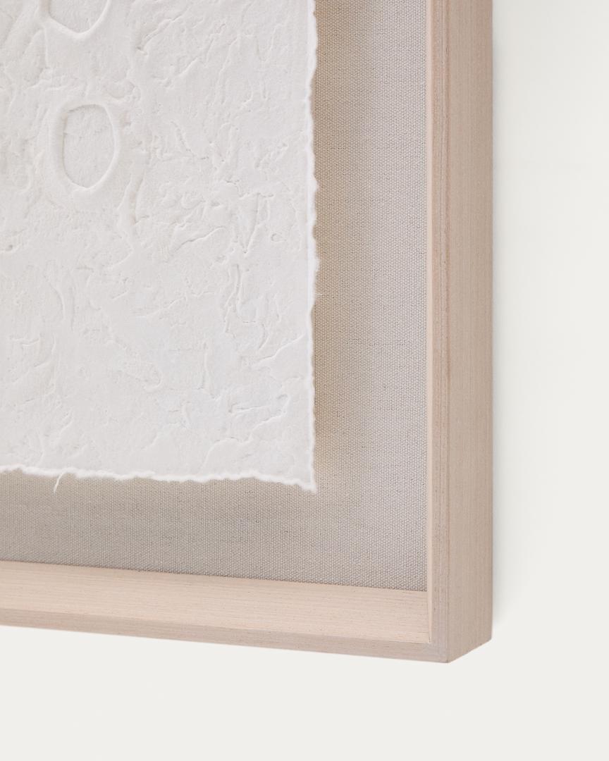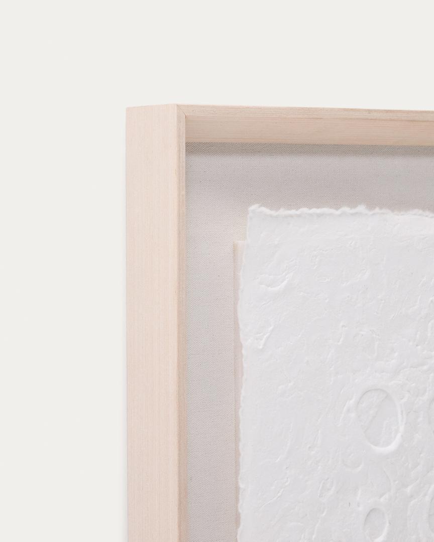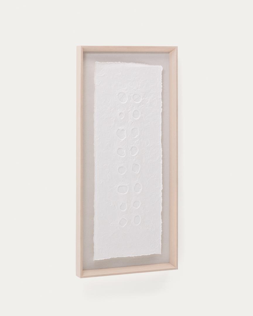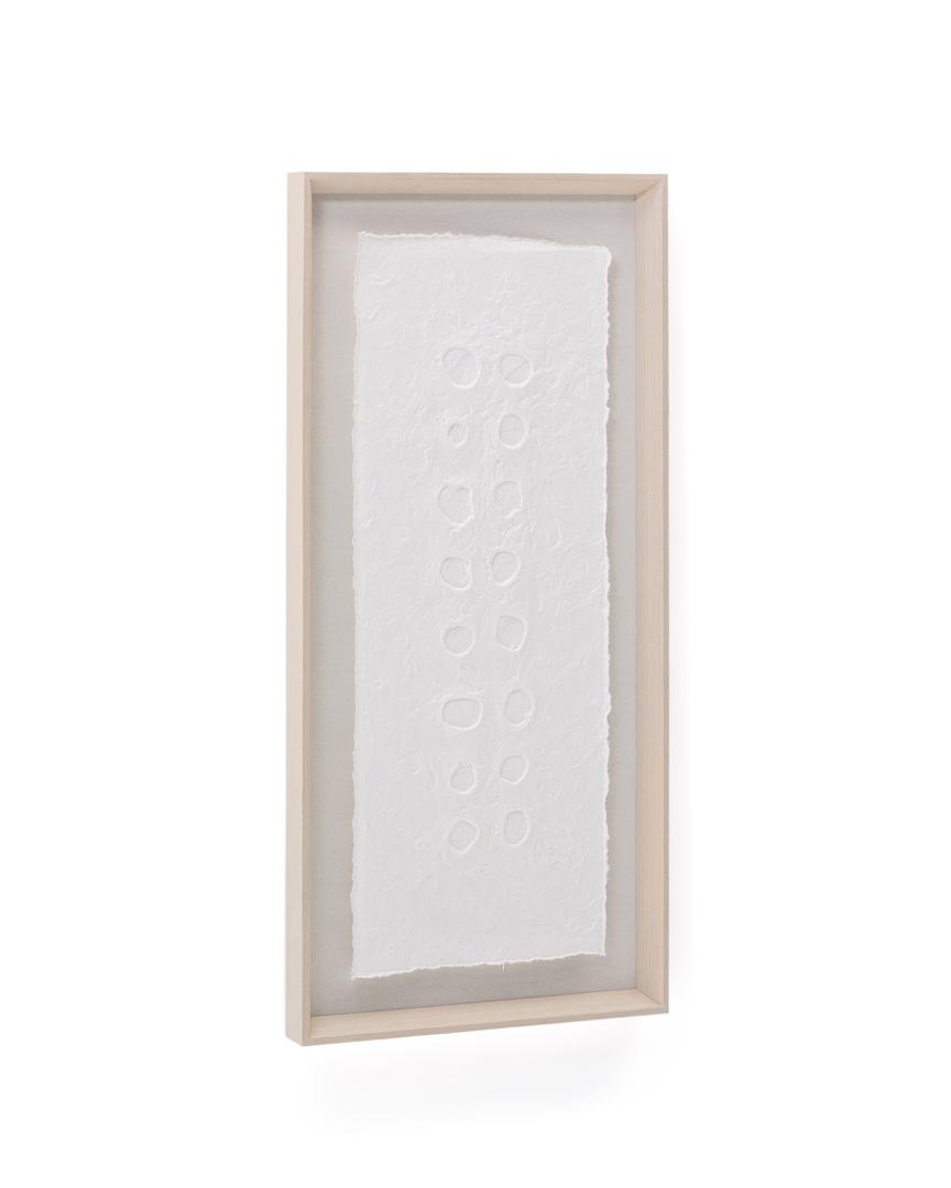 Картина Olvin выполнена из белой переработанной бумаги с уникальными рельефными узорами ручной работы, которые отличаются своим аутентичным характером. Каждый элемент является результатом техники тиснения, которая создаёт узор из точек и кругов по центру, добавляя дизайну текстуру и объём. Благодаря чистому покрытию картина идеально подходит для придания любому пространству художественного и оригинального вида. Она также прекрасно сочетается с другими картинами из коллекции, позволяя создавать гармоничные визуальные композиции, полные характера. Каждый рельеф отражает преданность своему создателю, что делает эту работу декоративным аксессуаром, сочетающим экологичность и современный дизайн.