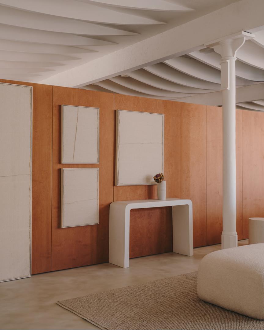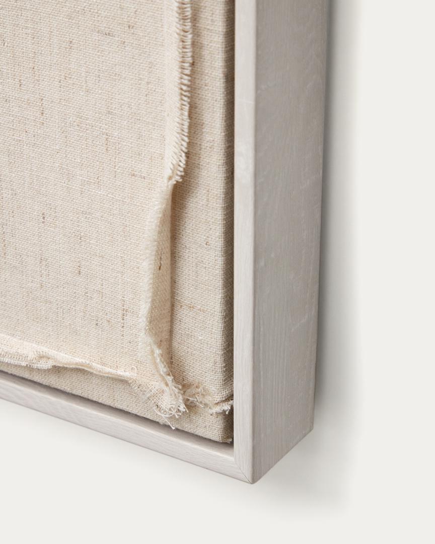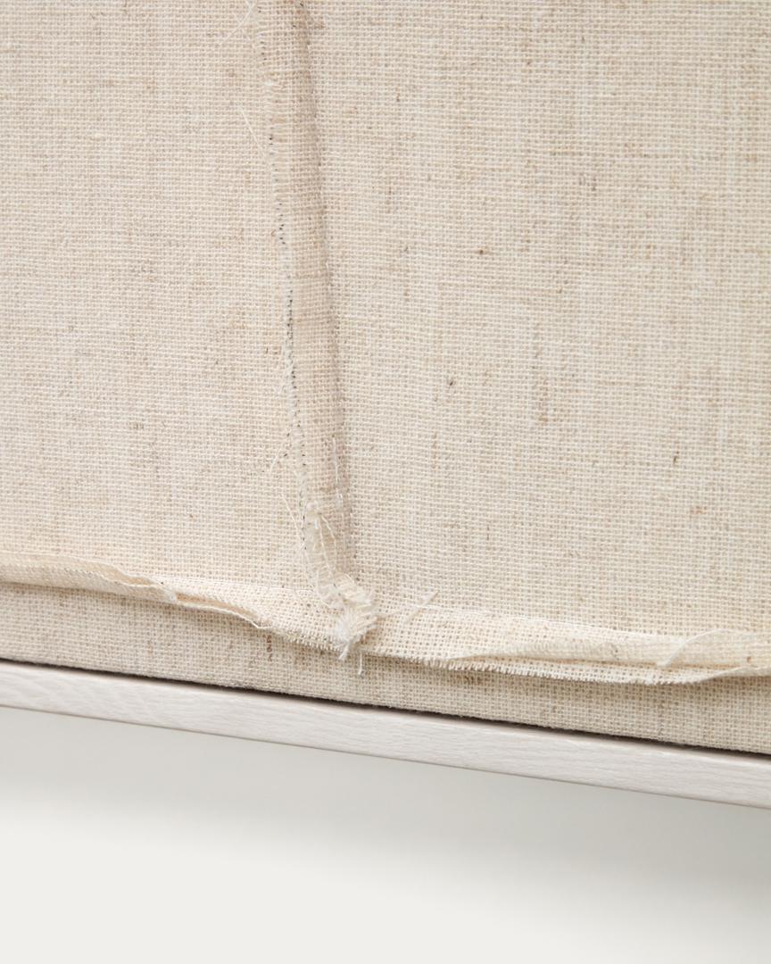 Картина Maha от фабрики La Forma (ex Julia Grup) – абстрактный минимализм для стильных обстановок. Картина Maha – это особый предмет интерьера, который безусловно обратит на себя внимание. Она создана для любителей натуральных материалов – из льна в естественном цвете. Вдохновленная минимализмом, ее дизайн создают сами швы. Выбрав коллекцию Maha, вы превратите свою гостиную в неповторимую галерею! Картина имеет прямоугольную форму. Она создана из льняного полотна, помещенного в деревянную раму. Полотно имеет горизонтальную или вертикальную складку (зависит от выбранного экземпляра). Именно этот защип образует уникальное изображение, но не в цвете, а в фактуре. На задней панели есть металлический крючок для подвеса к стене. Так как ткань имеет натуральную отделку, то для картины следует выбирать помещение с нормальной влажностью и комнатной температурой. Пыль и загрязнения необходимо убирать влажной салфеткой, после чего поверхность требуется сразу насухо протереть. В коллекции Maha представлено четыре картины – две в размере 52 на 72 см (с горизонтальной и вертикальной линией), 82 на 102 см с горизонтальной линией и 110 на 220 см с горизонтальной линией. Для полного вида и максимального эффекта рекомендуем собрать композицию из нескольких картин.