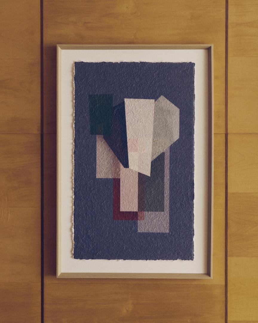 Эта картина вдохновлена кубизмом и архитектурой середины века. Она привносит глубину и индивидуальность в любое пространство благодаря сочетанию геометрических фигур и палитры серых и бордовых тонов. В этом дизайне архитектура деконструируется и синтезируется, чтобы отразить её в уникальном художественном произведении, где наложение плоскостей и игра прозрачности создают визуальный эффект, побуждающий к созерцанию и добавляющий нотку современной изысканности.