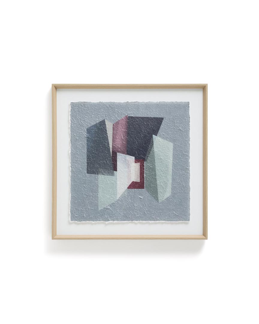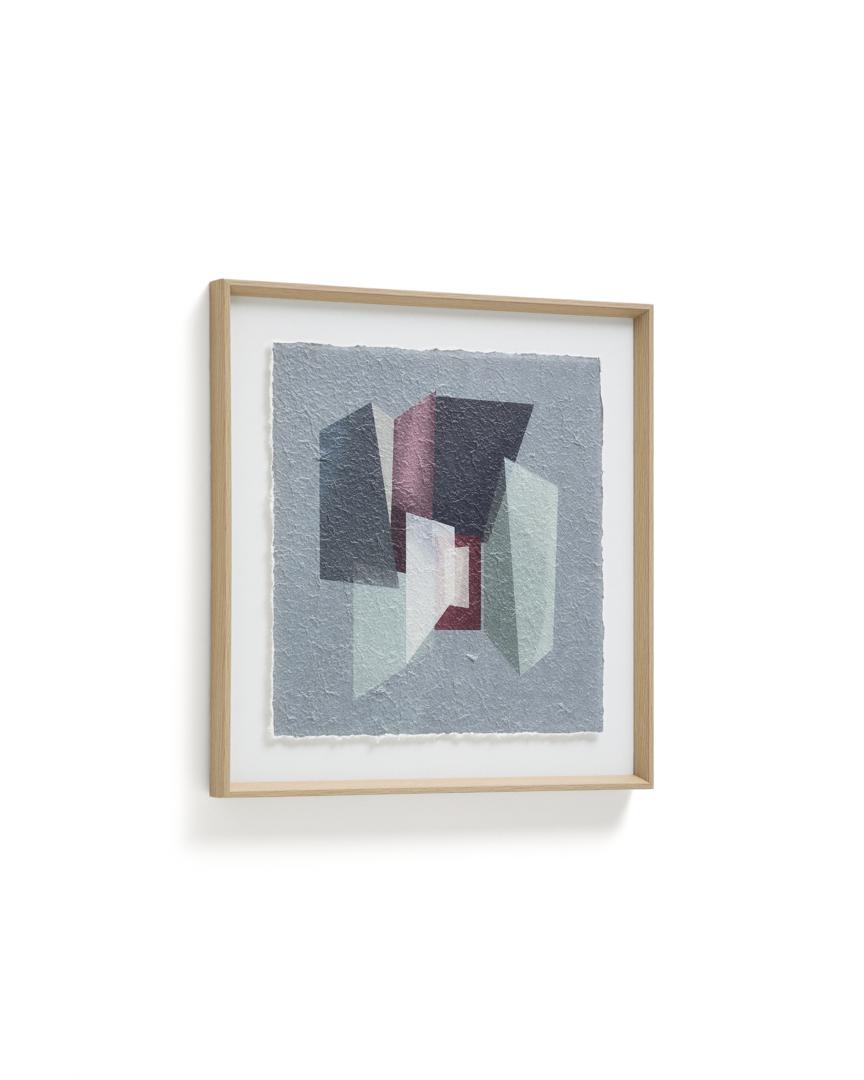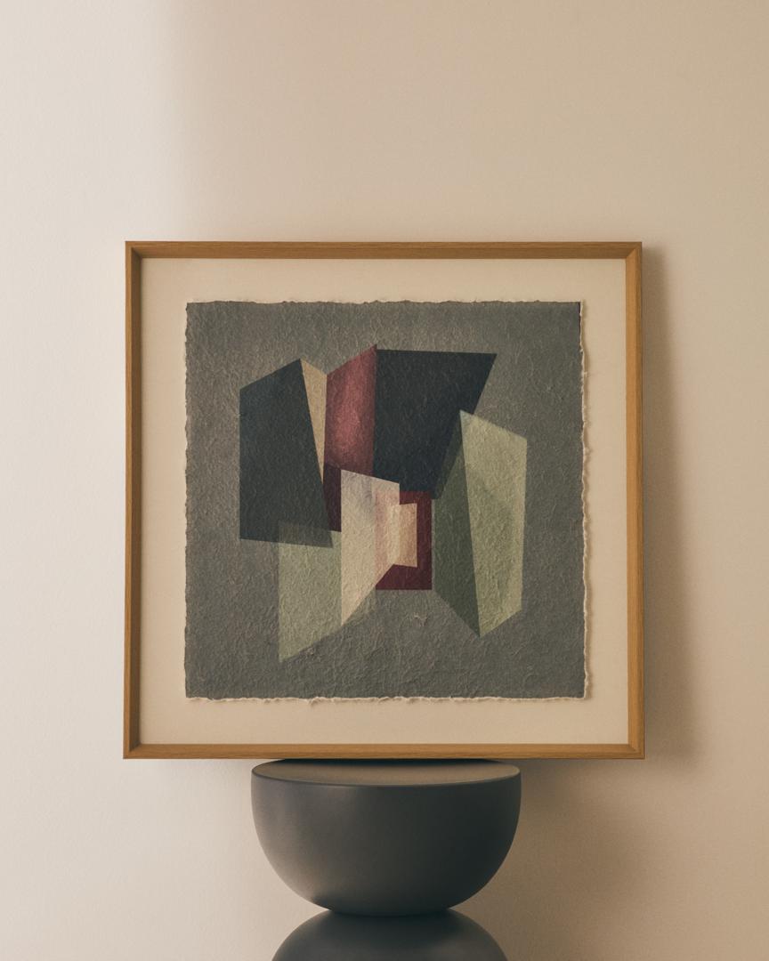Эта картина вдохновлена кубизмом и архитектурой середины века. Она привносит глубину и индивидуальность в любое пространство благодаря сочетанию геометрических фигур и палитры серых и бордовых тонов. В этом дизайне архитектура деконструируется и синтезируется, чтобы отразить её в уникальном художественном произведении, где наложение плоскостей и игра прозрачности создают визуальный эффект, побуждающий к созерцанию и добавляющий нотку современной изысканности.