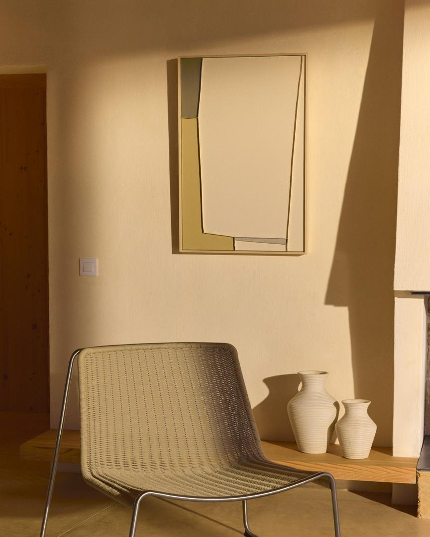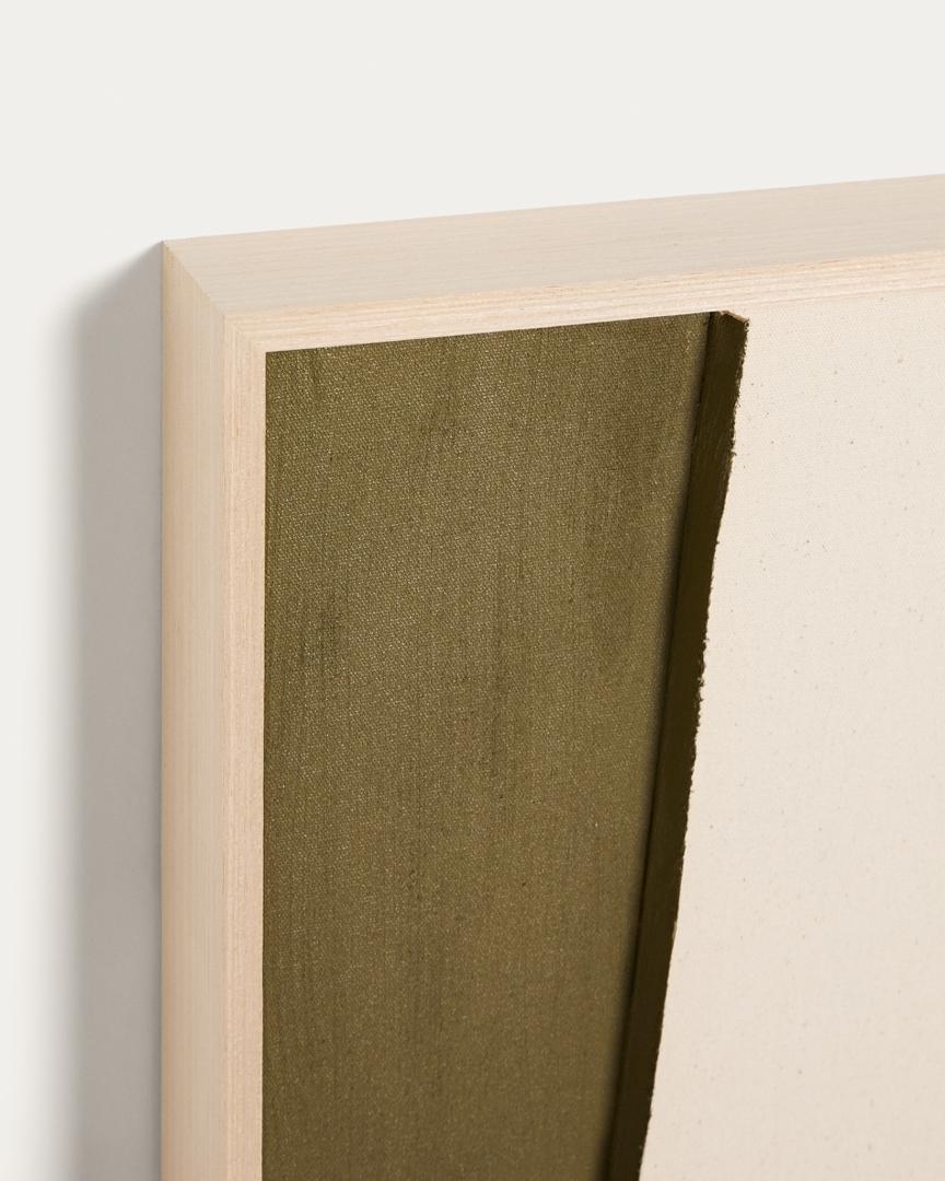 Коллекция Deravia представляет собой абстрактные картины, в которых рельефы, выполненные в технике льняной вышивки, сочетаются с палитрой мягких зеленых и нейтральных тонов, которые вводят цветовые нюансы, не нарушая баланса всей композиции, и привносят в пространство ощущение спокойствия. Каждая картина поставляется в раме с D-образным креплением, подходящим для любого типа стены.
