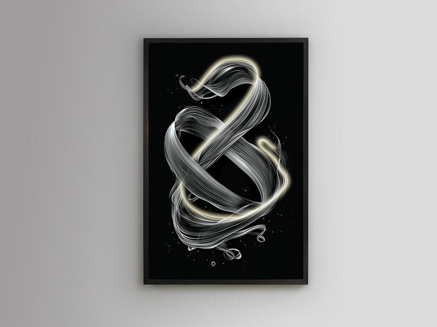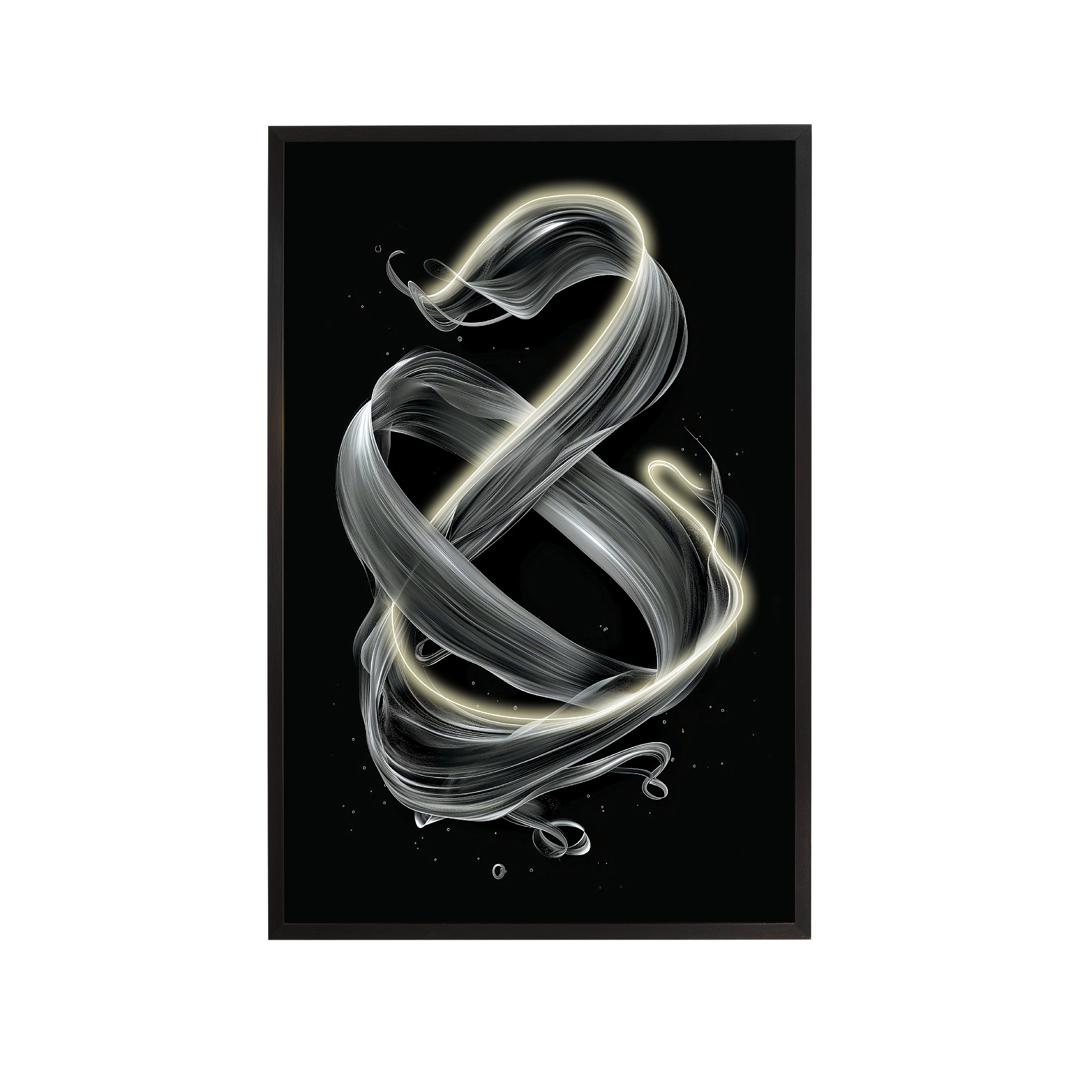 Кинетическая композиция с декоративной светодиодной лентой. Холст с принтом, наклеенный на картон и обрамленный в черный цвет. В комплект входят вилка и соединительная коробка на обратной стороне полотна