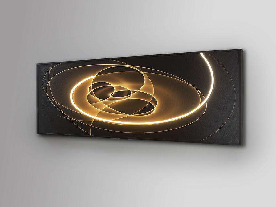 Световые дорожки, геометрическая композиция с декоративной светодиодной лентой. Холст с принтом, наклеенный на картон и обрамленный в черный цвет. В комплект входят вилка и соединительная коробка на обратной стороне полотна.