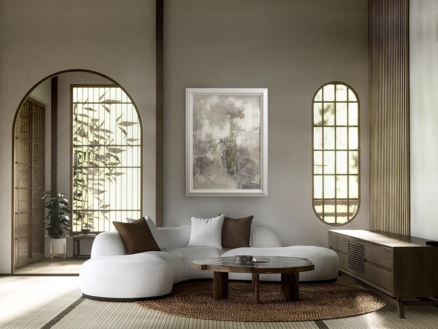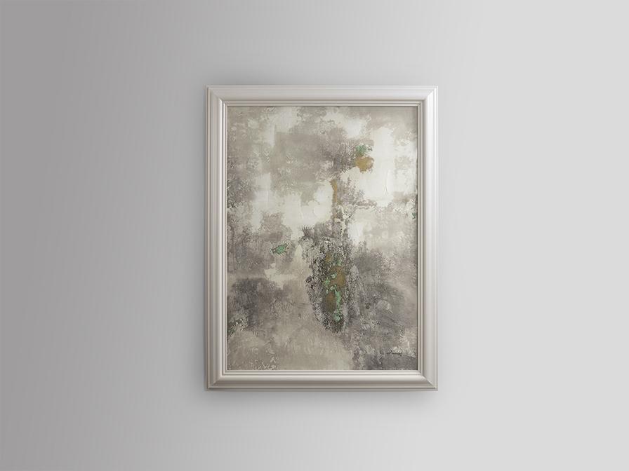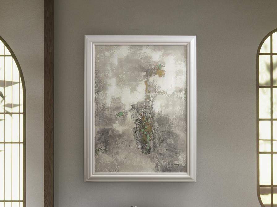 Картина выполнена акрилом и смолой на холсте. Рама из формованного белого полистирола.