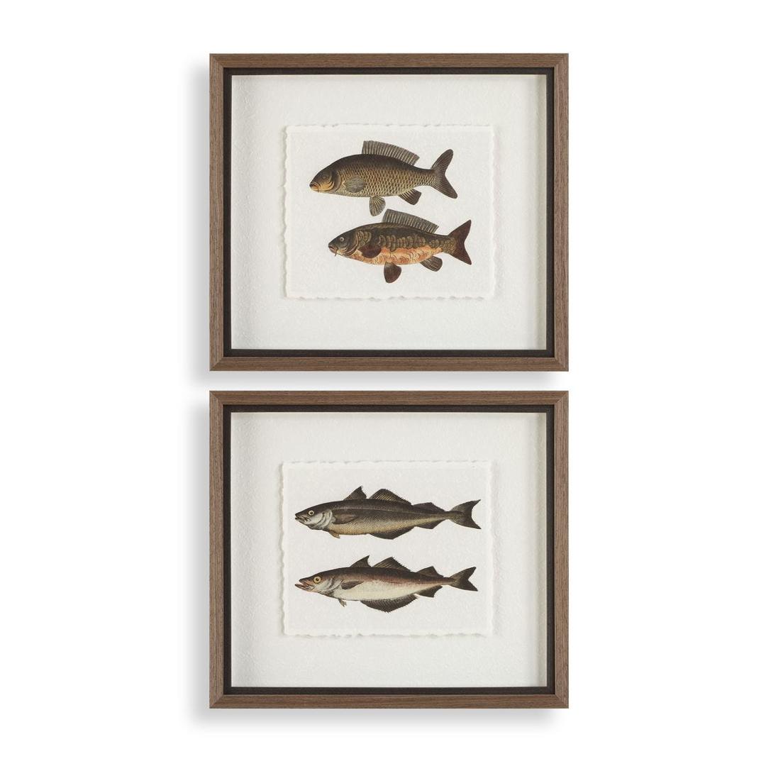 Эти изящно оформленные картины с рыбами перенесут вас в подводный мир. Изящные детали рыб воссозданы на фактурной художественной бумаге, а рама-коробка и обработанные вручную края добавляют нотку художественного изящества. Каждая картина помещена под защитное стекло. Отличный выбор для тех, кто ищет стильные детали для своего дома.