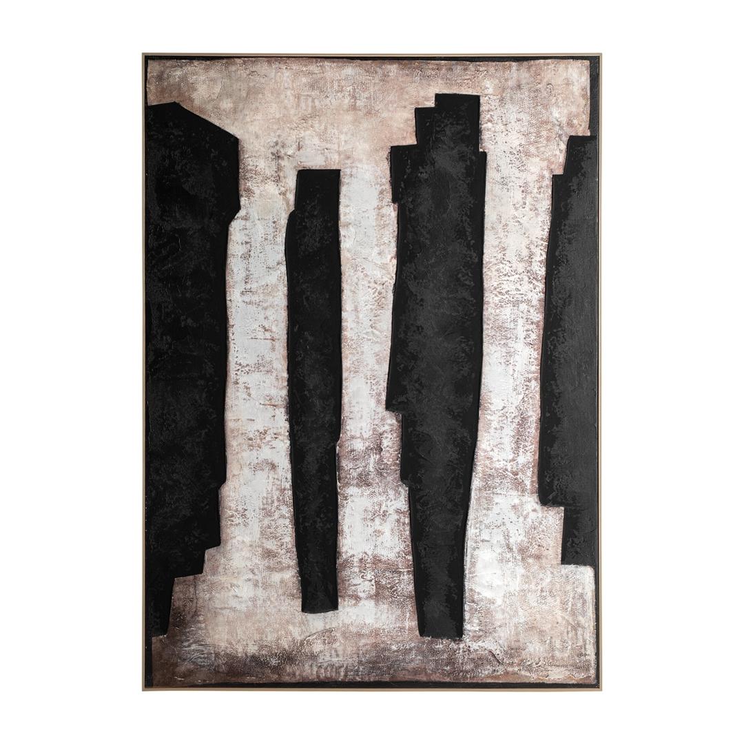 Картина Kurt в современном стиле, выполнена на холсте в нейтральных тонах в сочетании с коричневой сосновой древесиной. Ширина: 130 см, Глубина: 5 см, Высота: 180 см