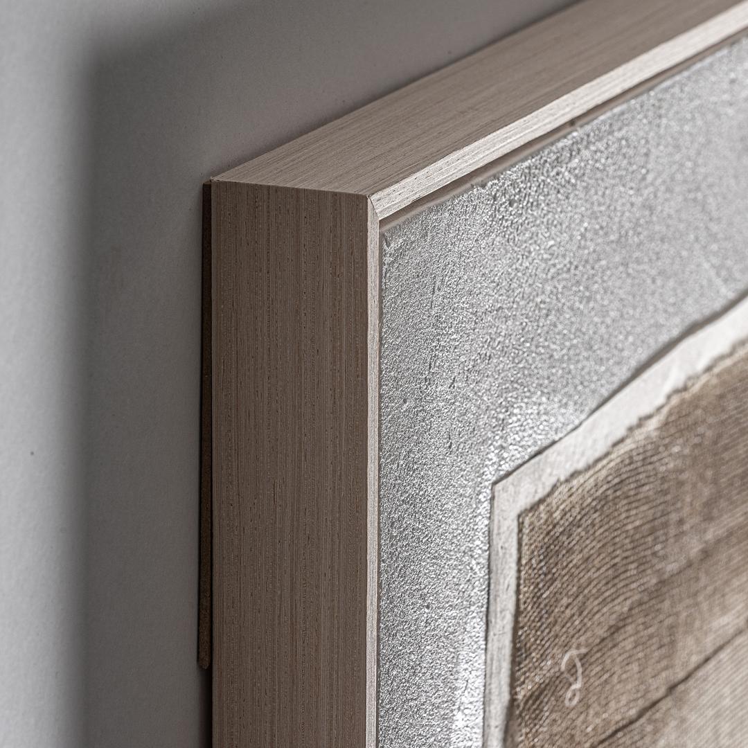 Картина BAVOIS в современном стиле, выполненная на холсте бежевого цвета в сочетании со светло-коричневой древесиной сосны в коричневых тонах.