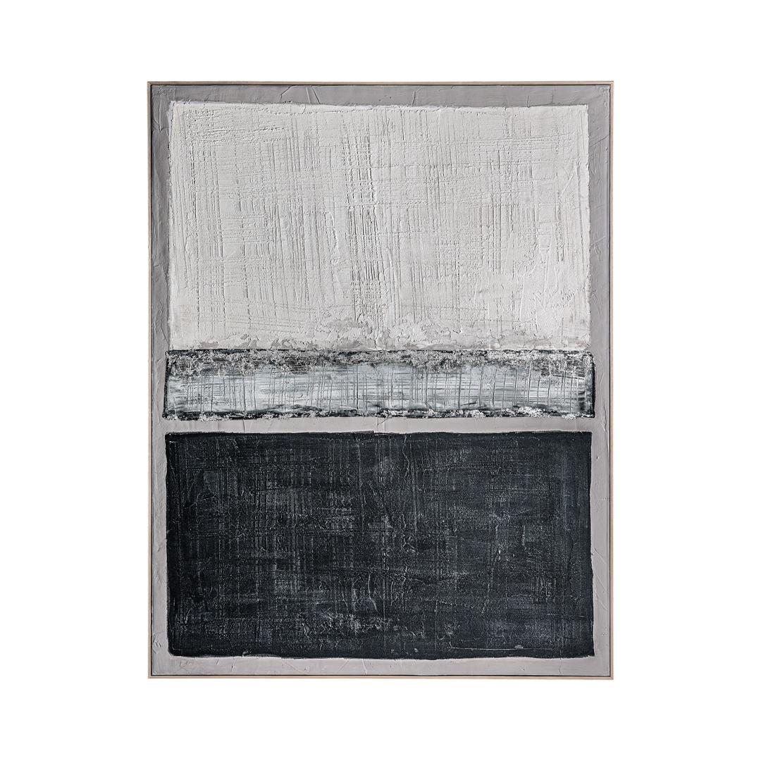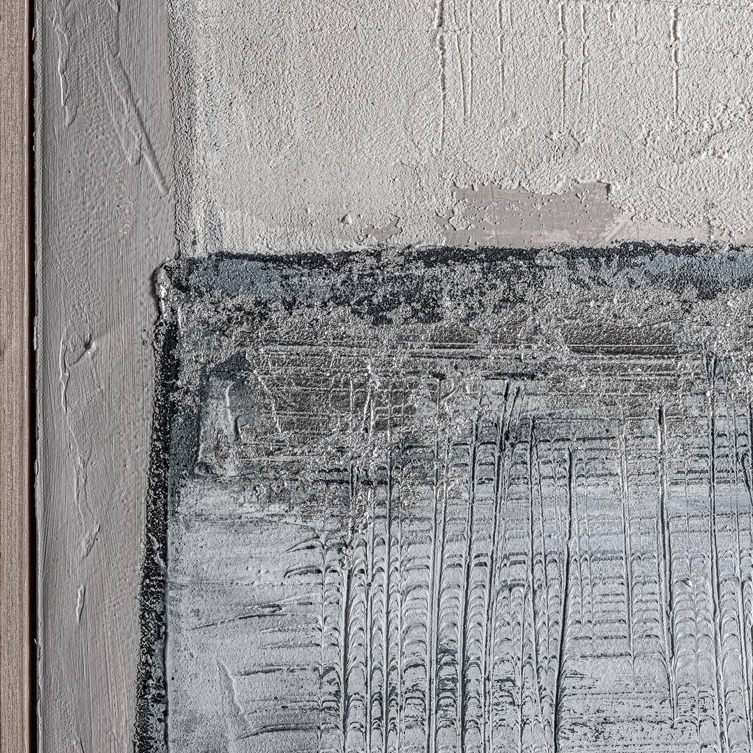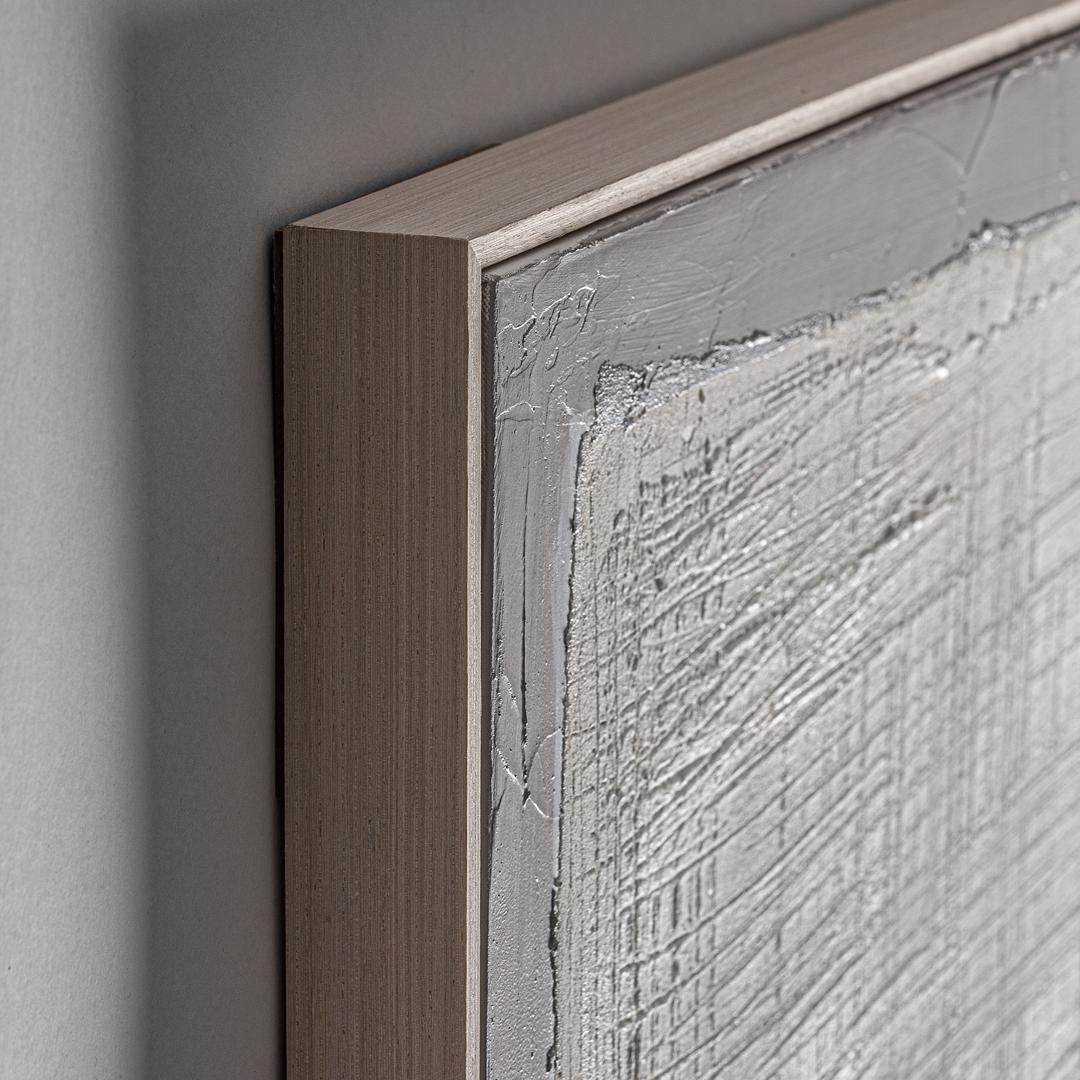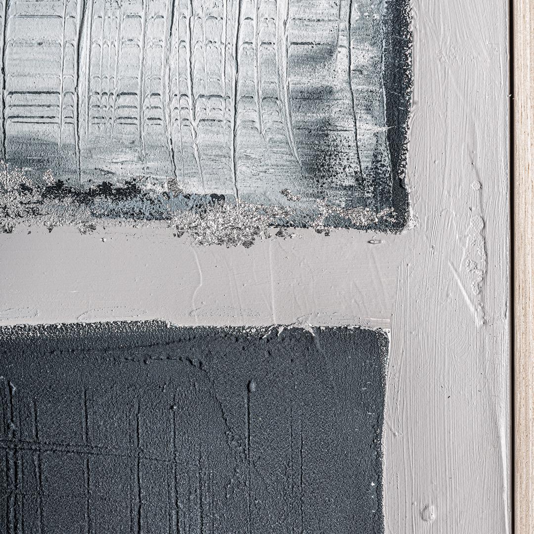 Картина BERCHER в современном стиле, выполненная на сером холсте в сочетании со светло-коричневой древесиной сосны в оттенках синего.
