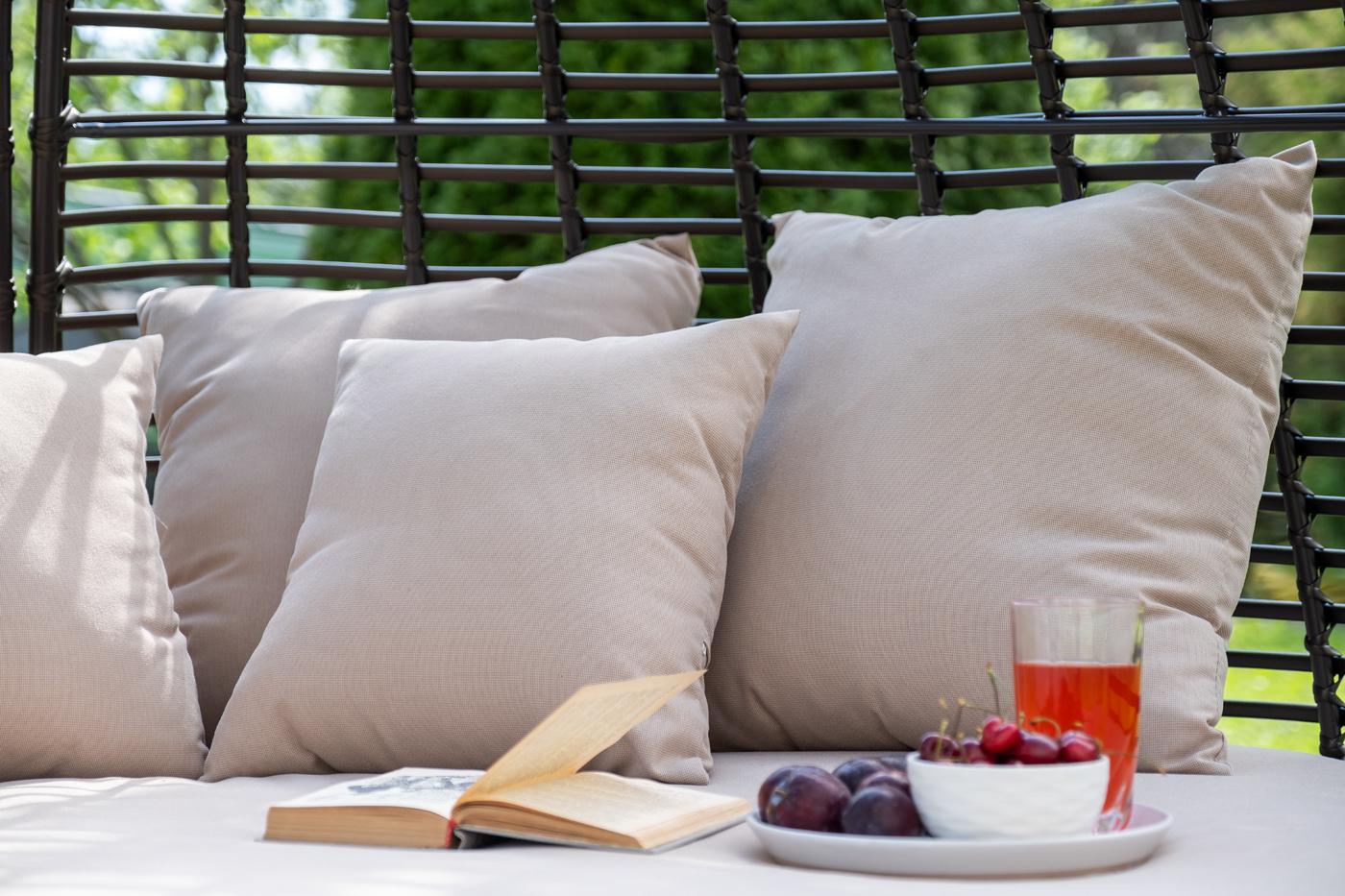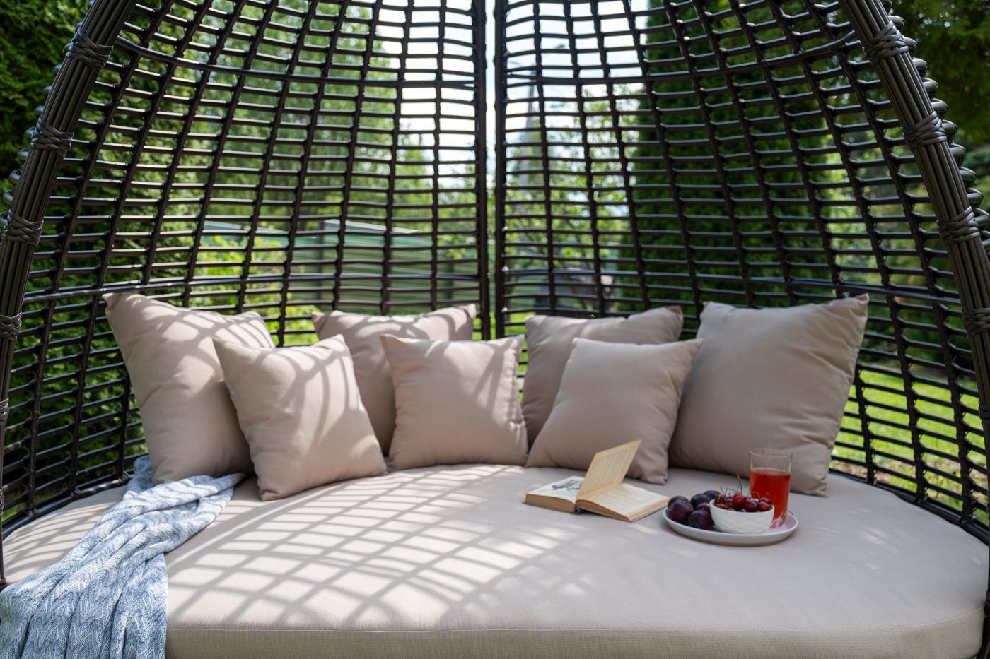 «Тенерифе» - кровать из искусственного ротанга полукруглой формы. Она идеально подойдет для использования на открытом воздухе, в том числе и возле бассейна. Имеет бронзовый оттенок. Функциональная полукруглая кровать выполнена плетением вручную из искусственного ротанга. Конструкция усилена алюминиевым каркасом. Мягкий матрас имеет съёмный чехол бежевого цвета, подлежит машинной стирке.